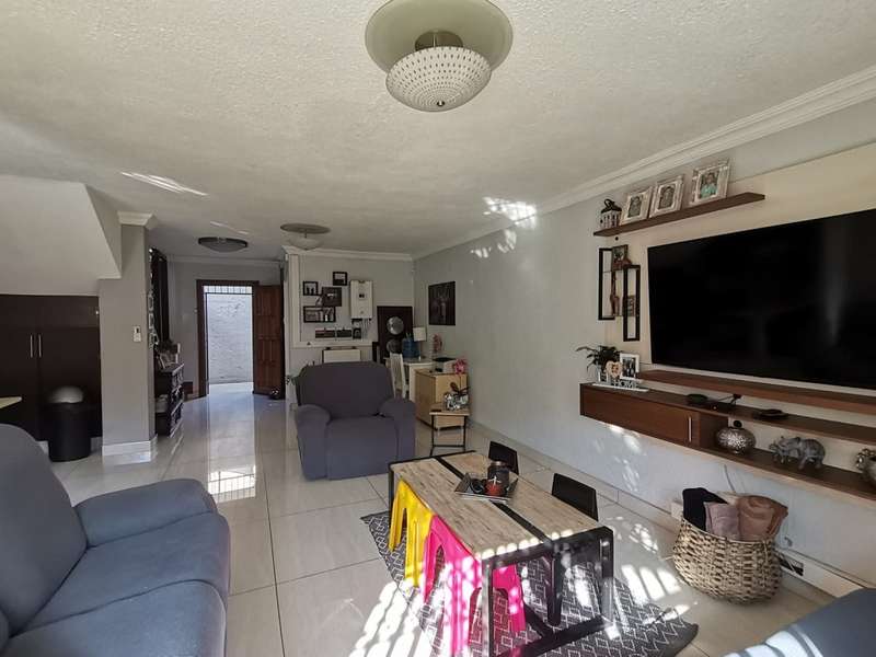 Nestled within the secure confines of Bassonia, this stunning residence exudes simplicity and sophistication. The property offers a spacious open plan kitchen, dining area, TV lounge area and the expansive lounge providing ample space for relaxation, entertaining, and hosting guests includes a guest toilet all seamless leads out to a spacious private well maintained garden. The modern kitchen showcases a high-quality and appropriate appliances and loads of cupboard space and a breakfast nook leading to the outside laundry area. The ascending and majestic staircase leads to 3 laminated floored and spacious bedrooms with built-in cupboards. Main bedroom has an en-suite with a walk-in wardrobe with ample space and the second bathroom serves the 2 bedrooms. layer of security, swimming pool and tranquility. Also offering an outside room with a potential of a flatlet. Complete with a double automated garage and ample additional parking. A very well secured unit with a communal pool and close to all amenities as well.. Overall, the townhouse is a luxurious and modern perfect for the family...
