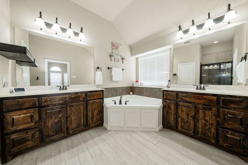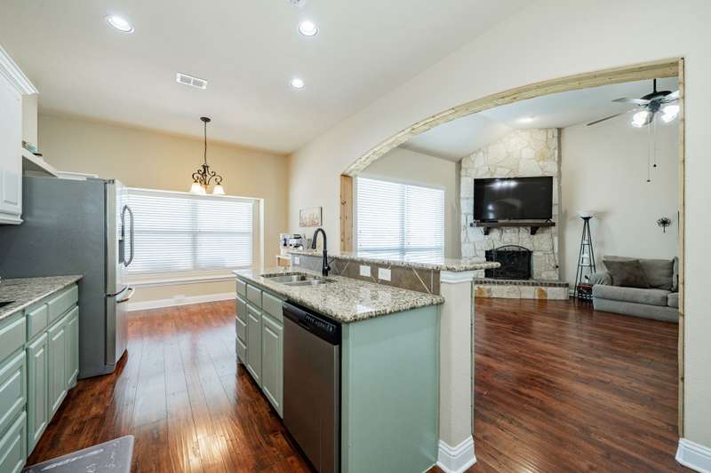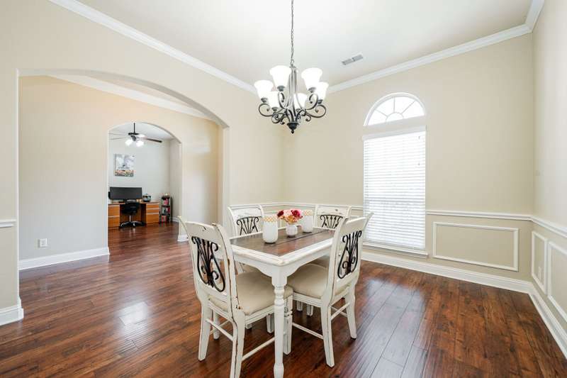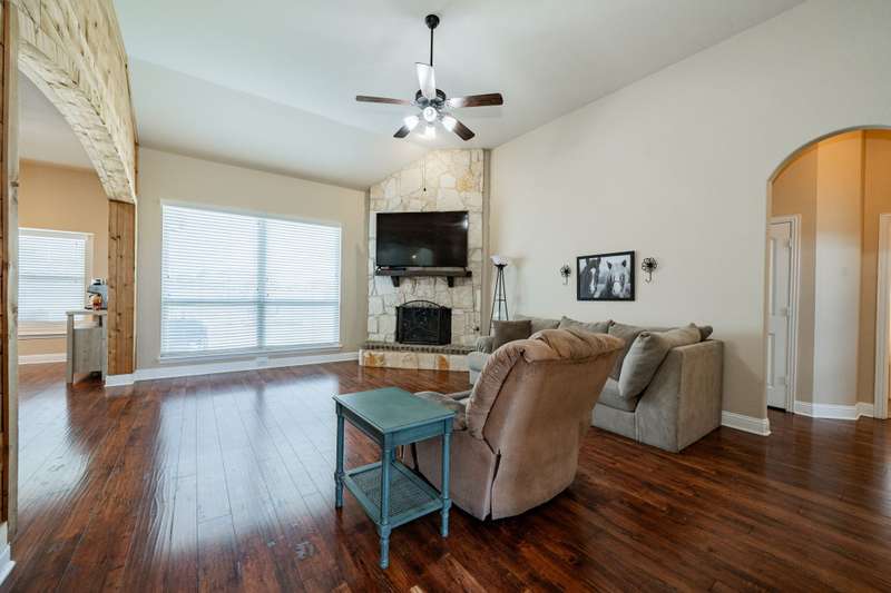 $10K to use towards closing cost, rate buydown or off price on this great property in Founders Addition with competitive offer!Step into this beautifully designed custom home where comfort meets style. This inviting residence features stunning wood floors throughout the living spaces & bedrooms. Crown moldings add a sophisticated touch, while the open-concept layout creates a seamless flow perfect for entertaining guests, both indoors and out. The living room is a standout feature, boasting a floor-to-ceiling stone fireplace, high ceilings, and beautiful wood trim accents, creating a welcoming and stylish space that sets the tone for the entire home. The gourmet kitchen is updated with granite countertops, convenient breakfast bar, stainless steel appliances, and double convection ovens. The spacious primary bedroom is your peaceful retreat, featuring high ceilings, crown moldings, and a private ensuite bath that offers a large garden tub for unwinding after a long day, a separate shower, and dual vanities for added convenience. The roomy secondary bedrooms with Jack-and-Jill bath, ensure functionality and comfort for family or guests. Plus, the flexible front living space, complete with closets, can easily serve as an office, secondary living room, or could be enclosed to create a fourth bedroom.Whether you're hosting a summer cookout on the covered rear patio, enjoying a cozy evening by the fire pit, or letting your pets roam free in the custom, fully fenced backyard, this home is designed for outdoor enjoyment. The stunning pool with its splash pad and tranquil waterfall elevates the backyard into a true paradise.The large 3-car garage includes built-in workbenches and plenty of room for storage. As a bonus, the extended driveway also allows for additional parking behind the privacy fence or provides space for a future workshop. Recent updates include new roof (2024), pool pump (2025), fresh interior paint, and kitchen remodel (2023)