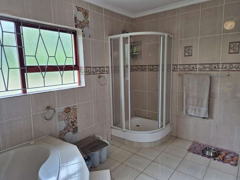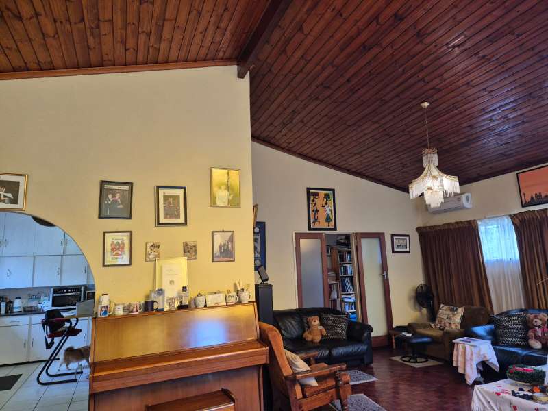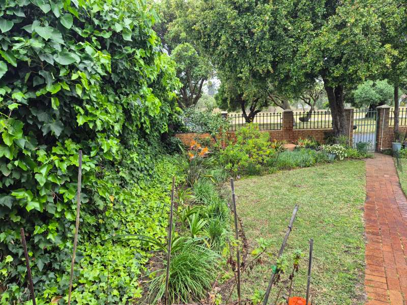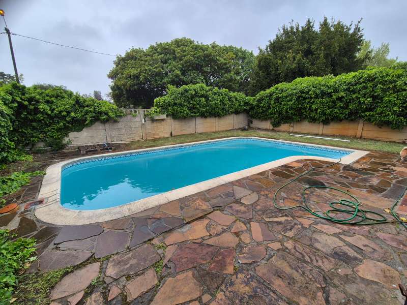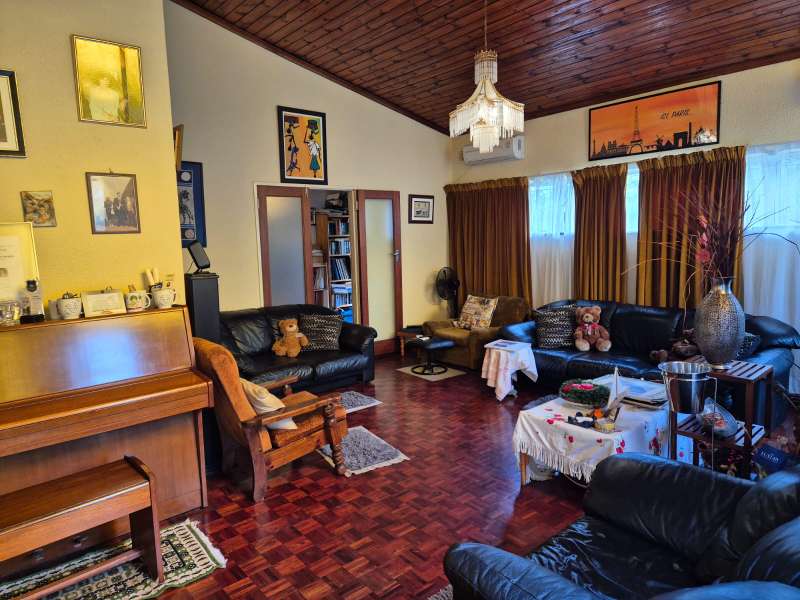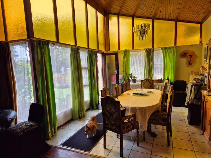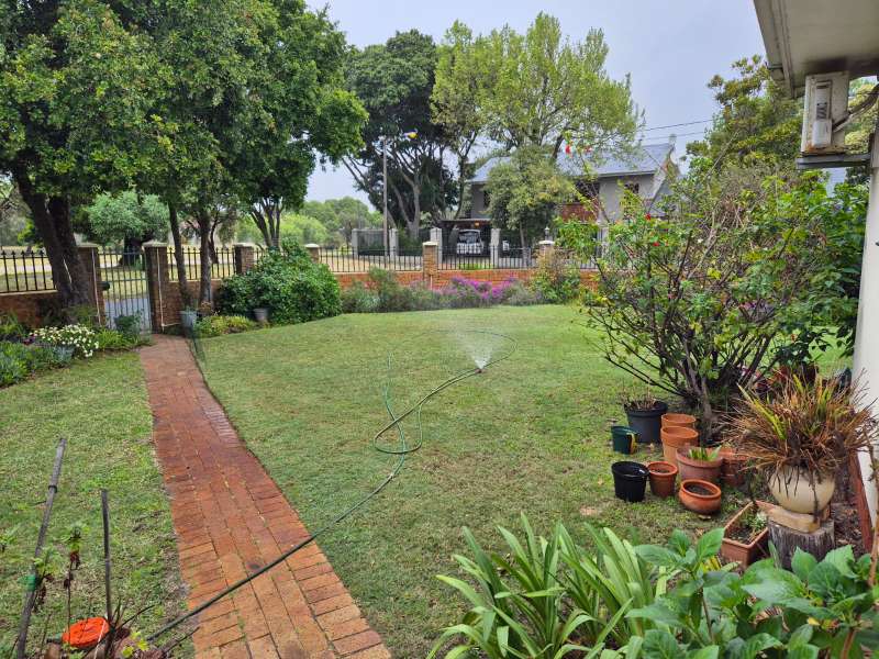 Charming family home nestled on a generous corner plot This beautifully designed home offers a seamless open-plan living experience with a fully fitted kitchen that flows effortlessly into the dining and spacious lounge areas. The kitchen features modern appliances and a convenient laundry room for added functionality. The entrance hall doubles as a versatile study space, perfect for working from home. The lounge boasts a cozy fireplace, ideal for relaxing on cold winter evenings. There are three bedrooms, each equipped with built-in cupboards. The main bedroom is a true retreat, complete with an en suite bathroom, a well-appointed dressing room, and patio doors that open to a sparkling swimming pool. For comfort, the main bedroom also features an air conditioner. A family bathroom with a bath and a built-in shower, along with a separate toilet, provides convenience for residents and guests alike. Security is comprehensive, with an alarm system, security cameras, and fully enclosed boundaries illuminated by outside lights. The property includes a single garage, a double carport, and fully automated gates for ease and safety. Enjoy the beautifully manicured garden, maintained with the help of a well point to conserve water. An outside toilet adds extra convenience, making this home perfect for comfortable, secure, and stylish living.