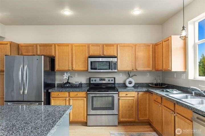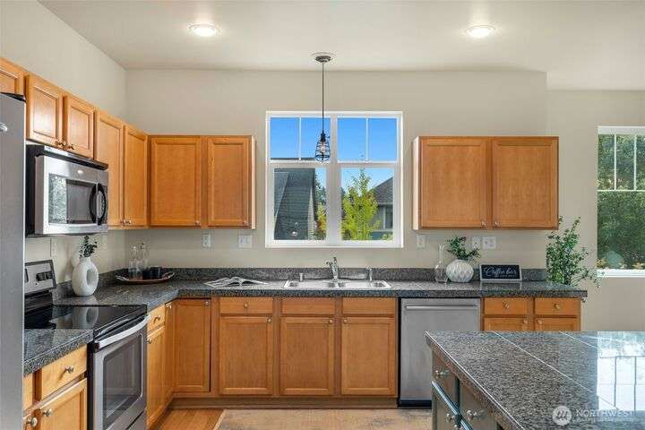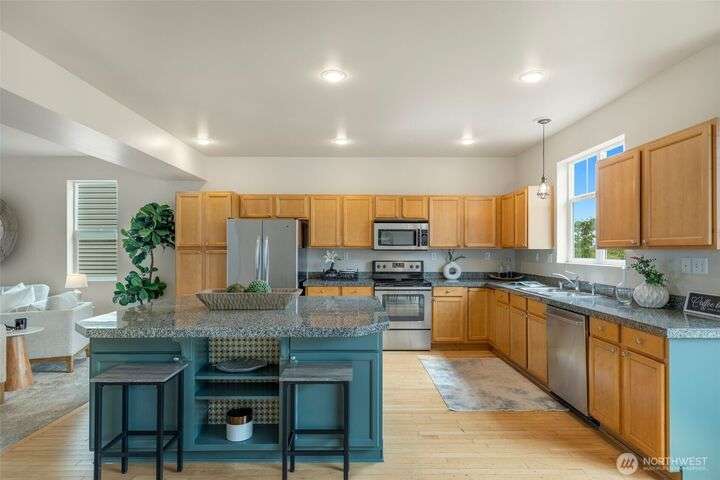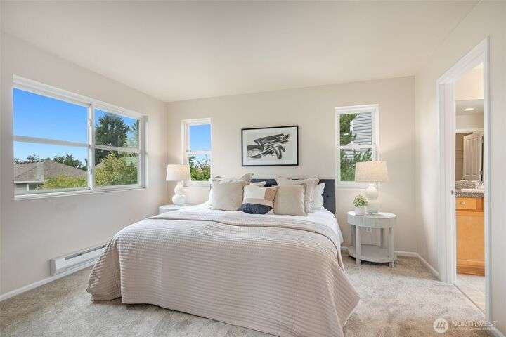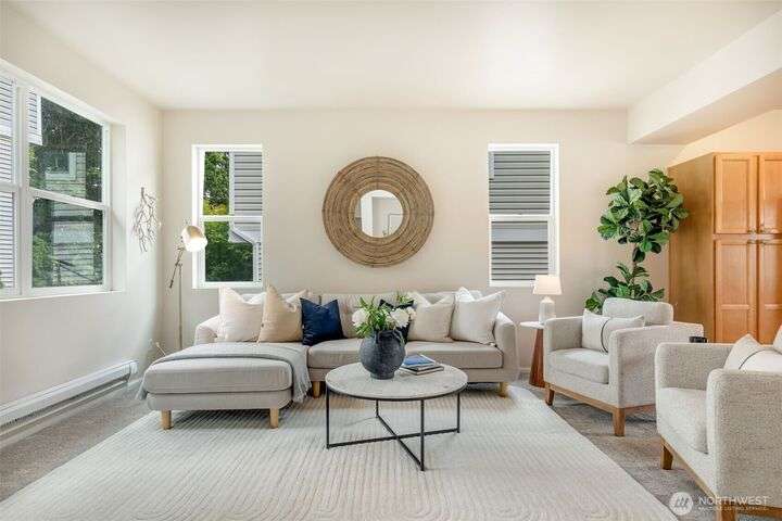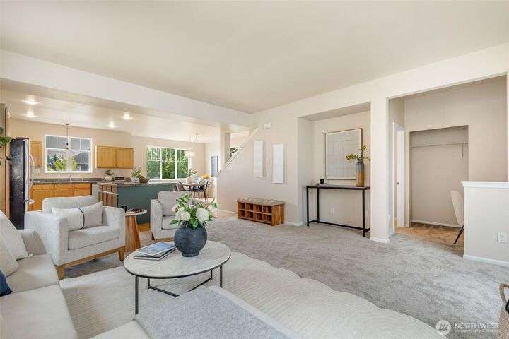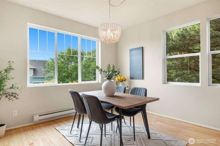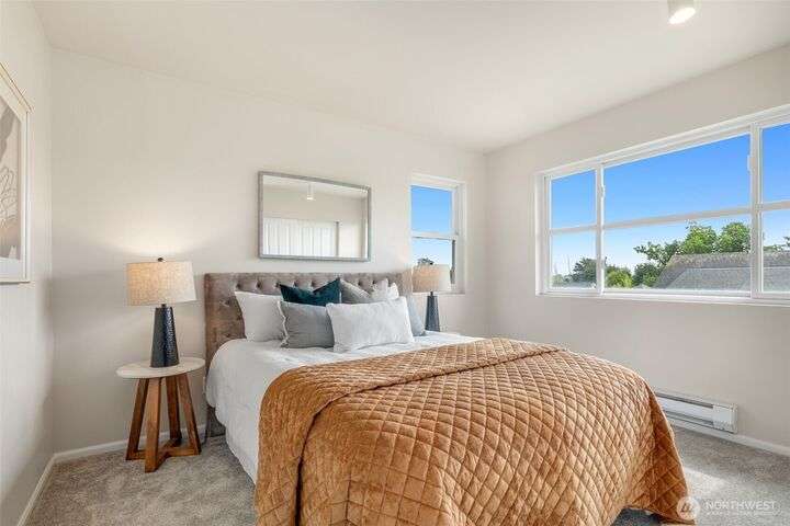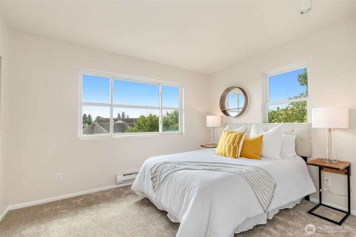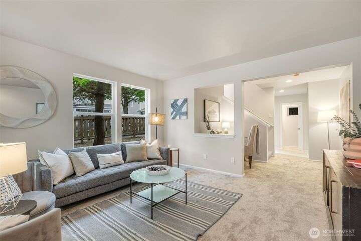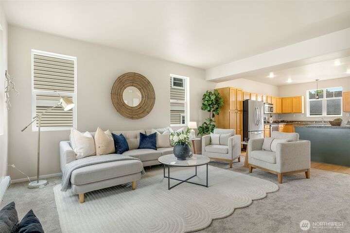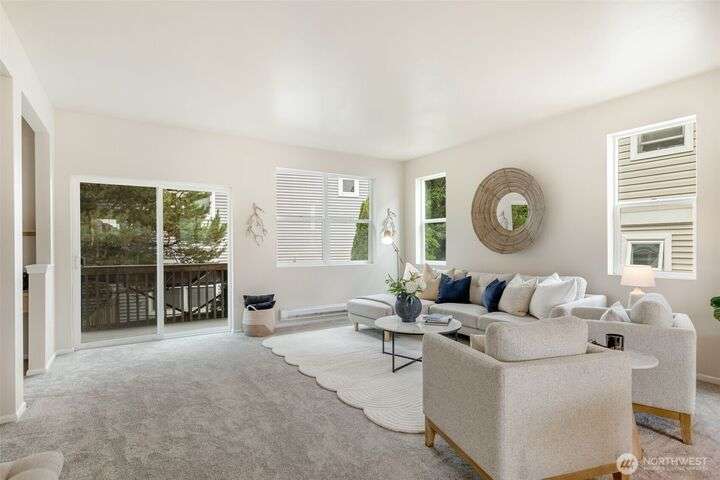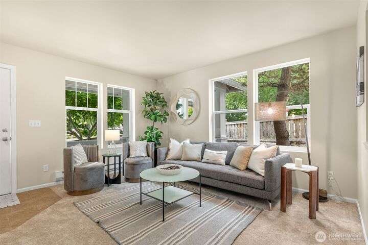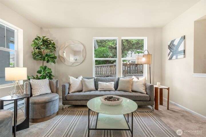 Sunny, standalone home on the corner of 2 quiet streets in the historic, master-planned High Point Community. Enjoy the front porch or hanging in the first-floor bonus rm. Main floor shines w/ natural light & open concept living w/ access to private patio. Features include attached tandem garage, w/ lots of storage, 3BRs on the upper floor, bathrooms on every level, primary w/ soaking tub, separate shower & generous walk-in closet. Move-in ready w/ new wall to wall carpets & fresh paint. Centrally located, close to SeaTac & W Seattle favorites Lincoln & Longfellow Parks & trails, P- patch garden, library & community center, minutes to Alki Beach & Morgan Junction’s shops & restaurants.