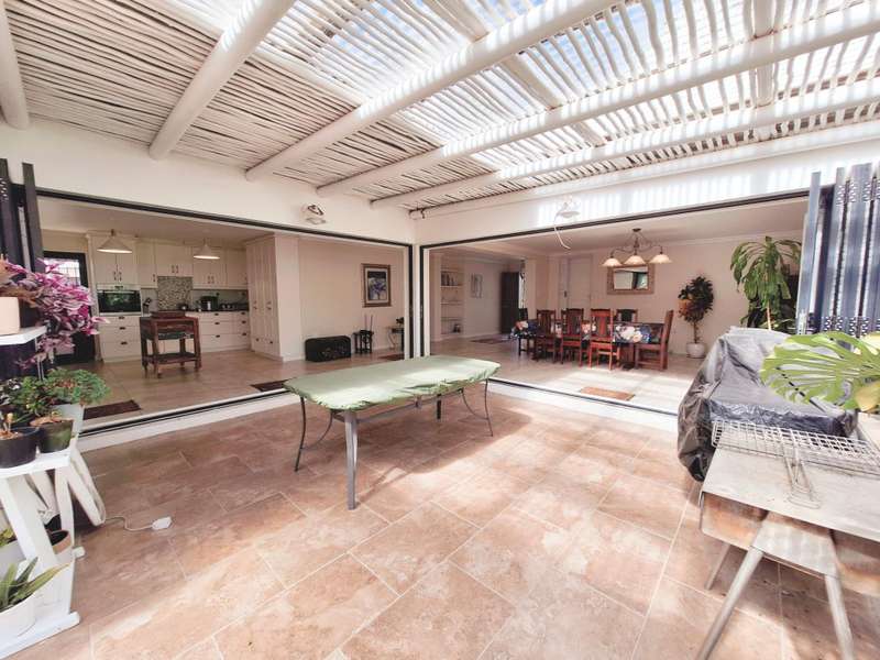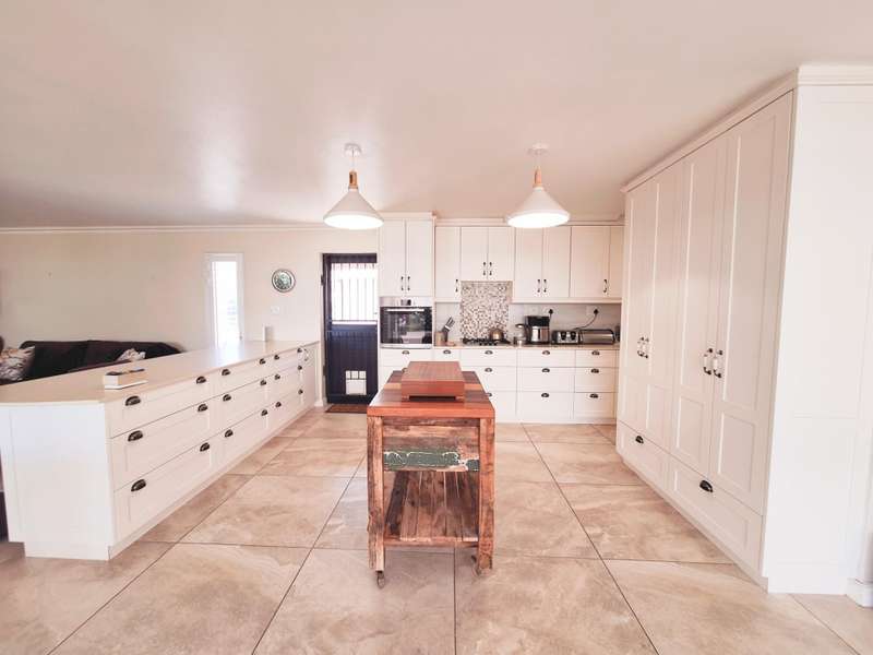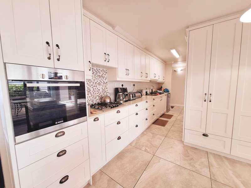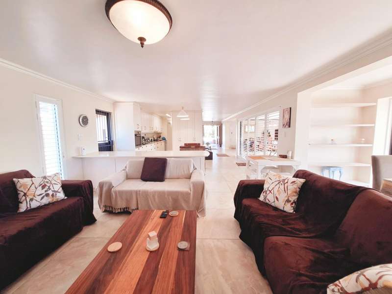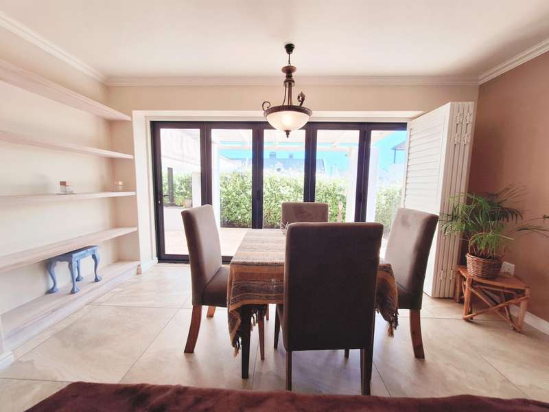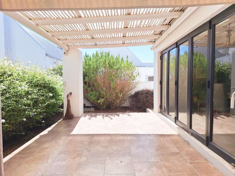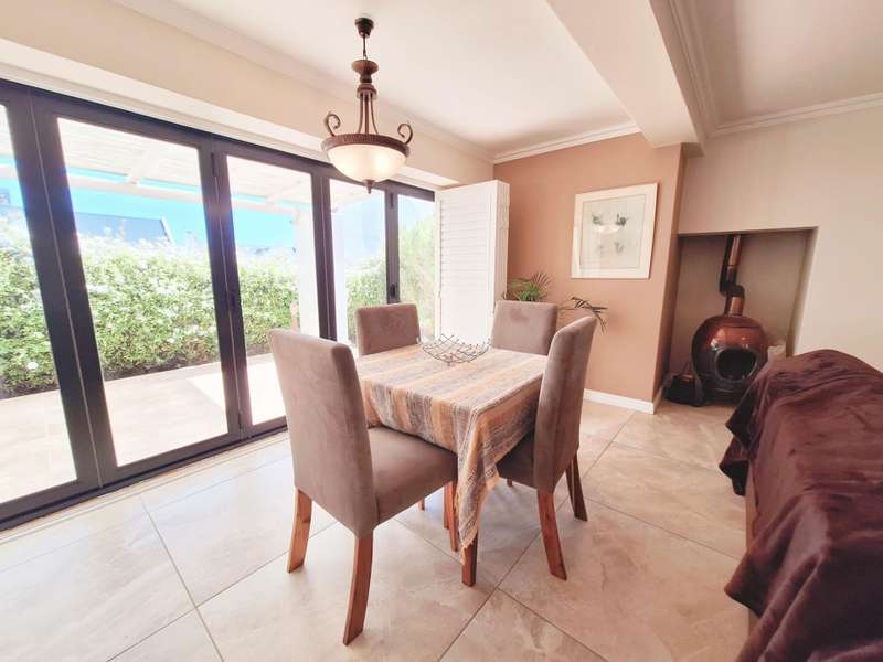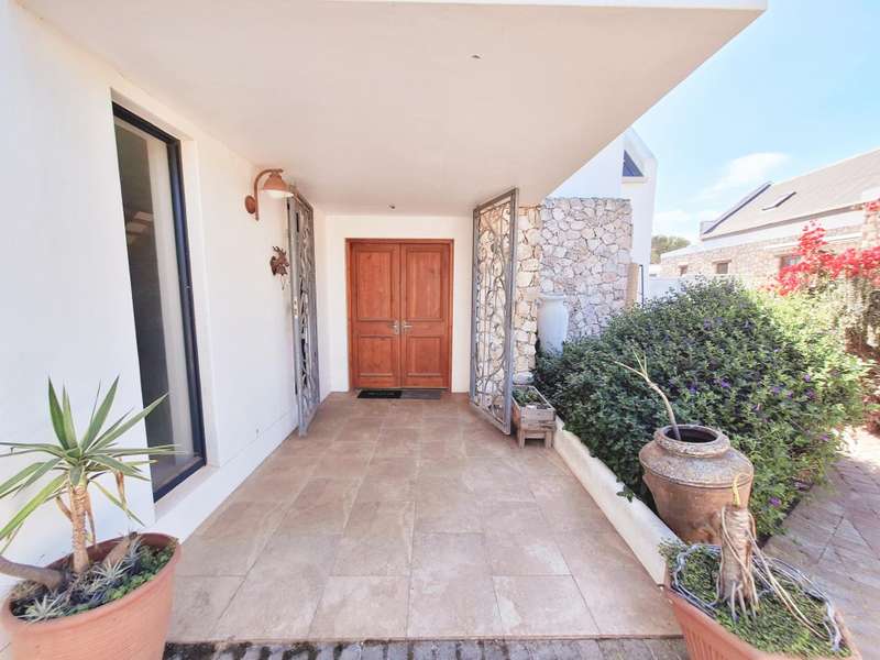 EXCLUSIVE MANDATE Beautiful Home with established garden The design of the home is statement to what may be achieved with careful planning, with an established and picturesque garden, red statement shutters seen from the road, and beautiful, practical finishes on the inside. Just move in! Whether you have a large family or enjoy entertaining friends, this home offers space in abundance. The home offers extreme privacy. Apart from the beautiful finished home, there is a hybrid solar system supplying the house with electricity. The system should supply the home with electricity for 5 days if there is no sunshine. You still have access to Eskom electricity if needed. * The front door opens onto a wide entrance hall that leads to the open plan living spaces. All the floors downstairs are tiled. In front of you, you will see the kitchen and family room, while on the left is a dining room with built-in braai. All of which opens up with large stacker doors and American security shutters to the covered patio. * The kitchen is well planned with a scullery out of eyesight. Features include an eye-level oven and gas hob as well as underfloor heating. Ample cupboards allows all the clutter to be put away, out of sight. From the kitchen you can open up the stack doors to the patio. There is space for a washing machine, dishwasher and tumble dryer in the scullery and you have the option to let the used water run into the grey water system or into the local storm water supply. * The family room also features under floor heating and has a beautiful fireplace to cozy up in winter. A large stack door and American security shutter opens up onto the patio, bringing the outdoors in. This creates space and light. * The dining room has a large built-in braai and also has a stack door opening up onto the patio allowing you to extend your party outside. * The patio is covered with see-through corrugated sheeting and can be closed off from the elements with a window and a canvas, should the need arise. * Out of view, you have a spacious guest bathroom with a basin, toilet and shower. . Upstairs you will find the bedrooms and additional bathrooms. The stairs and the rooms have engineered oak wood flooring, while the bathrooms are tiled. * The master bedroom has a beautiful deck to walk out onto and enjoy some peace and quiet. There is ample built-in cupboards. The en-suite bathroom has a beautiful free-standing bath, large shower, basin and toilet and features a roof window for additional light. * The second bedroom is also very large with ample built-in cupboards. It has a small deck to enjoy some privacy and allow light and air into the room. The en-suite bathroom is spacious and features a toilet, bidet, basin and shower and features a roof window for light. * The third bedroom can be utilized as a study, gym, games room or anything else that suits your requirements. The floor here is laminated flooring. This room is situated over the garage, meaning it is spacious. It also leads onto a deck and has some built-in cupboards. The front garden is beautifully laid out and well established. It is the perfect finishing touch to the home creating a beautiful picture from the road. The front garden has an irrigation system in place. The back yard has a small patch of grass that is watered from the grey water system. There is a small nuteck wendy house for tools to be stored. The drying yard is also well out of the eye from the street and neighbours. All the plants in the back garden are well established and thriving. The home has 7000 liters of water in various water tanks around the property. Jacobsbaai is a small village that spans along 2 km of coastline between Saldanha and Paternoster, on the West Coast of South Africa. It is 15min drive to the nearest shopping center, hospitals and schools. It is 90min drive to Cape Town International Airport. Should you wish to view this home, please feel free to contact the agents for an appointment.