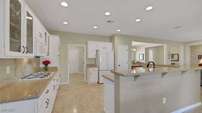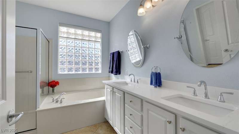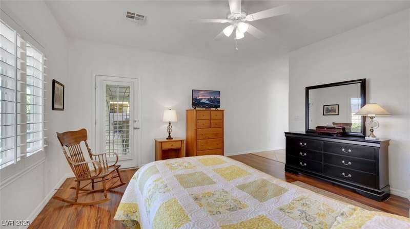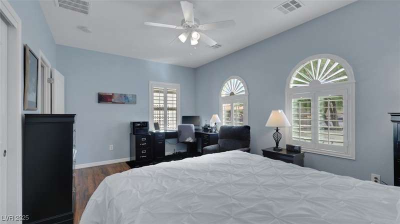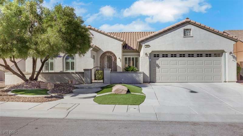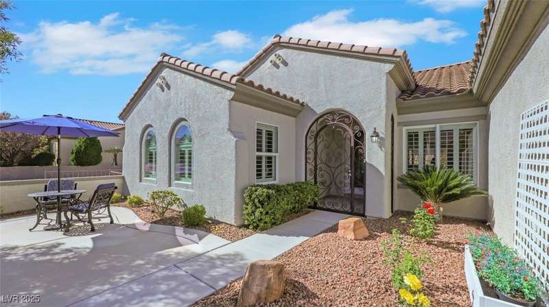 STUNNING.....2Bd, 2Ba (2012 sq ft) Jackson model located on a quiet interior street w/elevated lot & mountain views on all sides in the heart of Sun City Anthem (55+) located just 2-blocks from the Liberty Community Center. Curb appeals starts w/custom front walkway, beautiful turf landscapes, inviting front courtyard, custom iron gate, glass door entry & fresh exterior paint. Interior features include hard surface flooring & custom shutters throughout, fresh neutral paint colors, large great room w/surround sound system, new quartz countertops in bathrooms, granite island kitchen, multiple dining areas, oversized laundry & storage room, 2-car garage w/built cabinets & workbench. Private & elevated backyard features include full length custom patio cover adjoining large covered patio deck area w/custom BBQ island, iron fencing on all sides w/gates, beautiful turf & mature landscaping features and newer HVAC system. Low taxes & HOA fees. Entire home & yard are spotless & move-in ready.