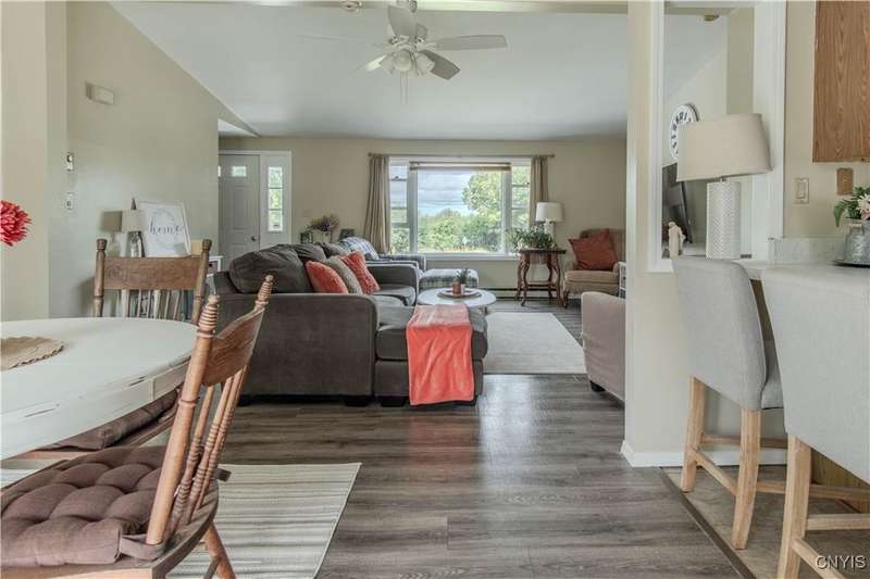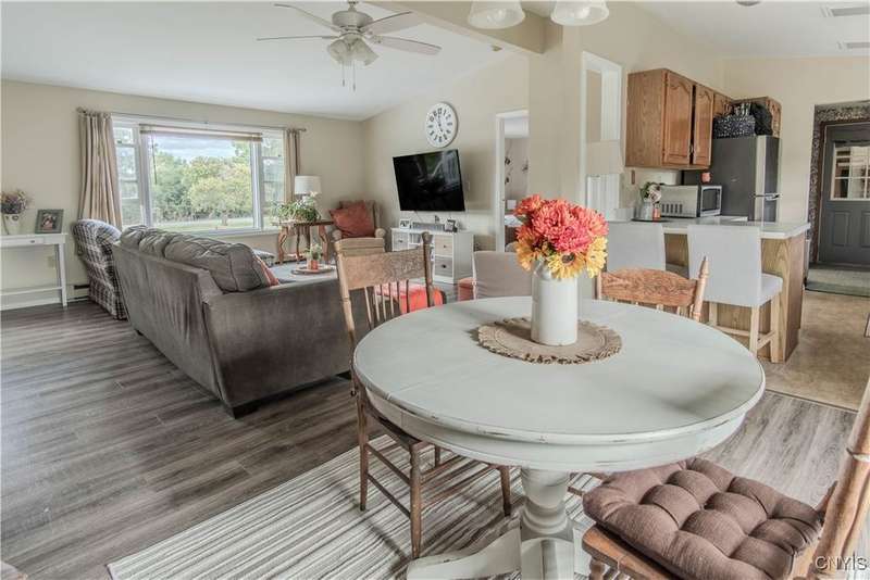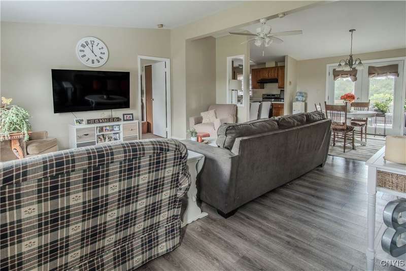 Welcome home! Adorable 3 bedroom, 2 full bath ranch on 3 acres in the Town of Watertown & SJ district! Upon entering you will find a spacious open living room with high ceilings and tons of natural light, dining area and fully applianced kitchen! Primary bedroom with attached full bathroom, 2 additional bedrooms and full bath as well as first floor laundry! Newer flooring and paint throughout! Attached two car garage as well as additional storage sheds! Lovely deck with privacy galore! Call today, this gem won't last long!