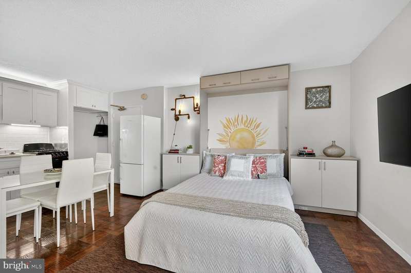 Charming sun-filled studio with a separately deeded garage parking space at The Willoughby, located in the heart of Friendship Heights. This residence offers comfort and convenience in one of the DC Metro Area's most sought-after neighborhoods-just steps from everything. Interior Features""‹: South-facing unit with beautiful views through a picturesque window. Recently updated kitchen featuring quartz countertops, gas stove ""‹and generous cabinetry""‹. Queen-size Murphy bed with built-in cabinets on each side, maximizing space and functionality""‹. Beautifully renovated ""‹full bath with a contemporary vanity and stylish finishes""‹. Two closet spaces and wood floors""‹. Parking & Fees""‹: Includes one separately deeded garage parking space (G41""‹). Lo""‹w monthly condo fee of $377.92 covers all utilities, garage parking""‹ and building amenities. Building Amenities""‹: Rooftop pool and sundeck""‹, fitness center and sauna""‹, 24/7 concierge and secure entry""‹, convenience store and Alfio's Italian Restaurant""‹, and Complimentary building shuttle to shopping and metro hubs""‹. Unbeatable Location""‹: Nestled in the vibrant heart of Friendship Heights, everything you need is just steps away:""‹ 2 blocks to the Metro""‹. World-class shopping: Saks Fifth Avenue, Tiffany & Co""‹,""‹ Bloomingdale's, Talbots, Gourmet dining""‹s, Lia's, Sushi Ko, Maggiano's""‹, Cheesecake Factory, Whole Foods and a new Trader Joe's expected to be open in November""‹. Natural light, views, thoughtful upgrades, and a well-designed living space make Unit 2105S a truly welcoming home.