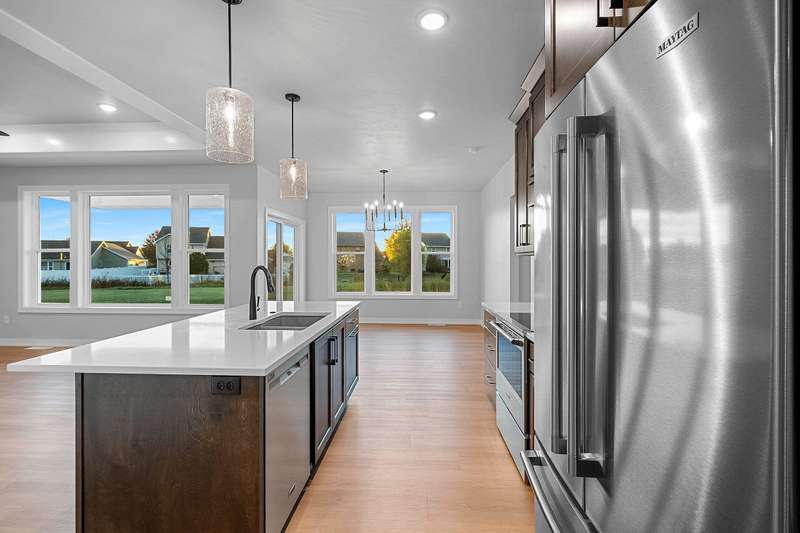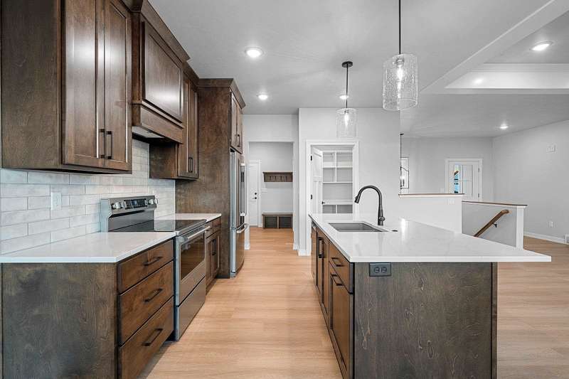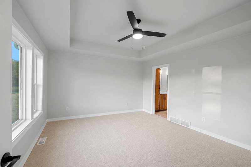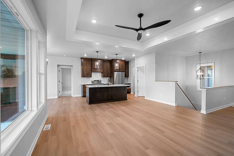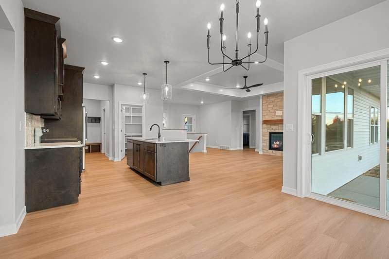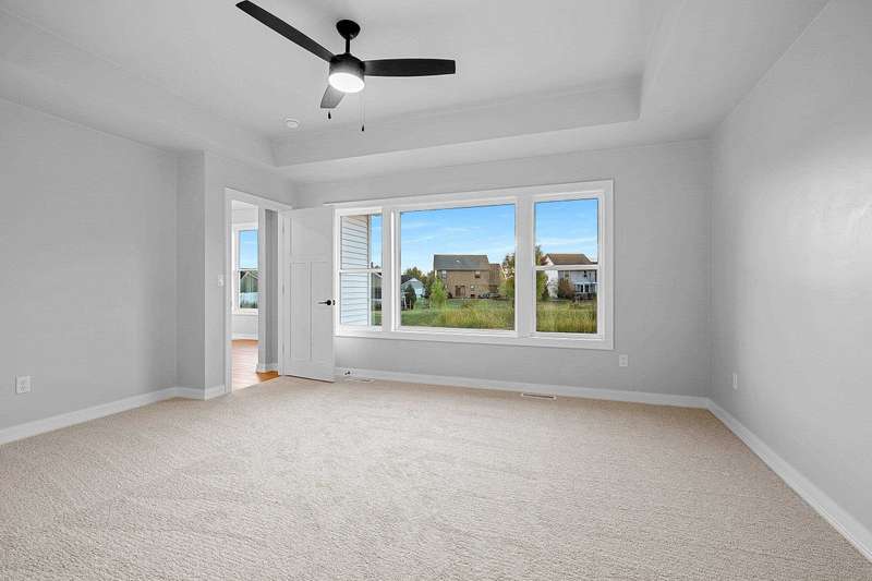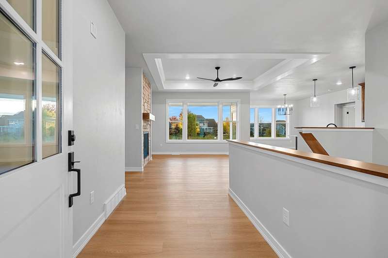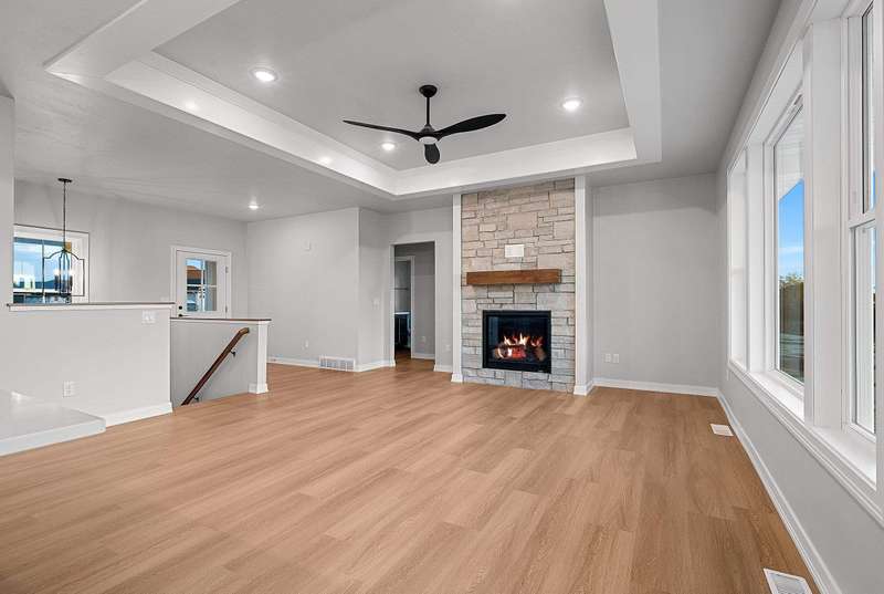 Welcome to your dream home nestled in a quiet setting. The heart of this home is the impressive Great Room adorned with a stylish tray ceiling & inviting FP perfect for cozy gatherings during chilly evenings. Enjoy a beautifully designed kitchen featuring quartz countertops, a sleek tile backsplash, generous pantry & a center island that is a natural gathering spot. Retreat to the primary bedroom w/ inviting tray ceiling, amazing WI closet, ensuite bathroom w/ dual sinks & a tile WI shower. This space is designed for comfort & relaxation. Step outside to a private covered patio, an ideal setting for dining, morning coffee or simply enjoying the peaceful surroundings. The LL is a blank canvas, already stubbed for a bathroom, waiting for your personal touch. Lawn is seeded. Move in & enjoy!