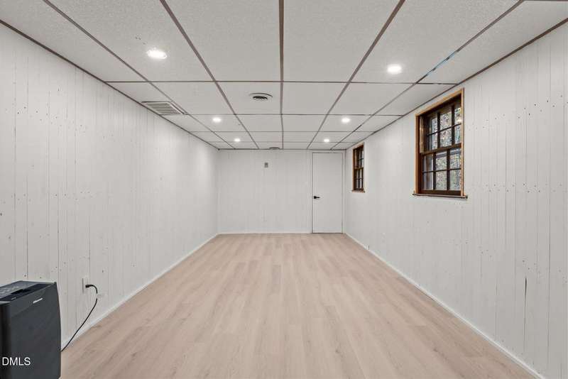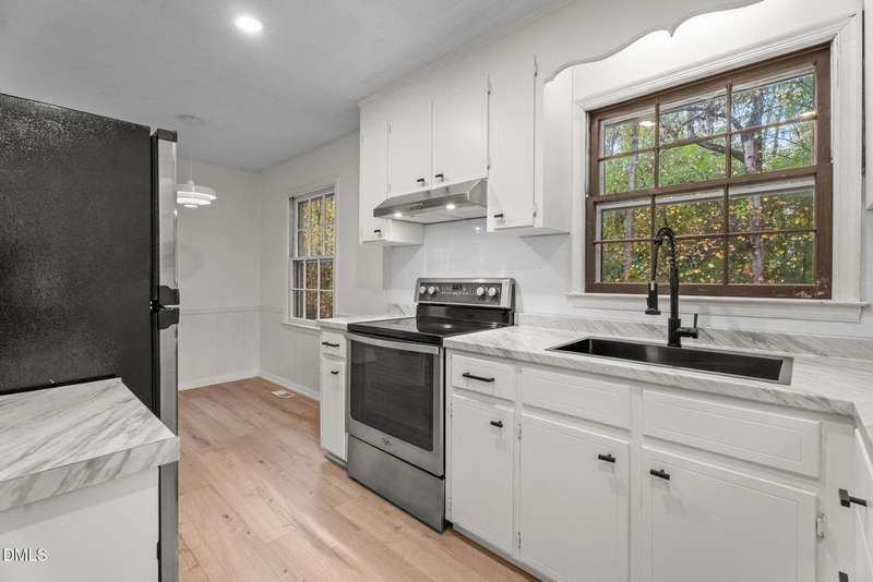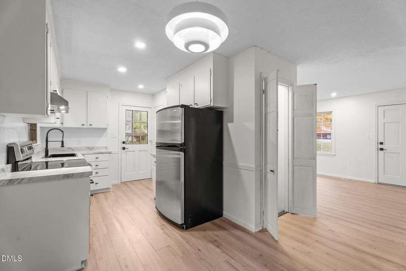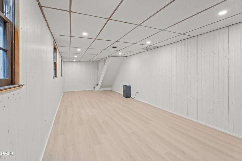 This Charming, recently remodeled 3-bedroom, 1.5-bath home offers comfortable living with a modern touch. The property features brand-new LVP flooring throughout, new recessed lighting, and an updated kitchen equipped with stainless steel appliances. Both bathrooms have been tastefully updated for a clean, contemporary look.The finished basement provides additional living or recreation space, ideal for a home office, gym, or entertainment area. Enjoy grilling or relaxing on the back deck overlooking the beautiful backyard. Move-in ready and designed for practical everyday living. This property sits on approximately .45 acres with mature trees offering natural shade and privacy. Don't miss out on this amazing property in downtown Louisburg!!!