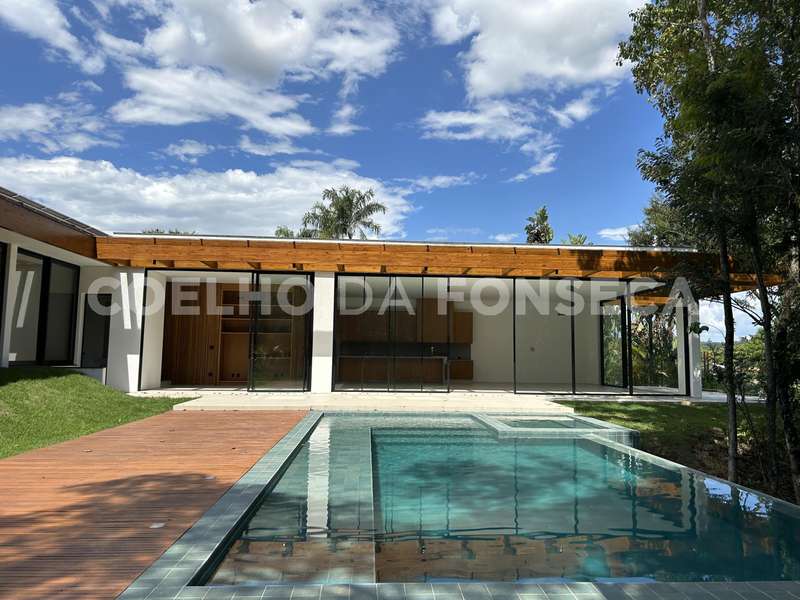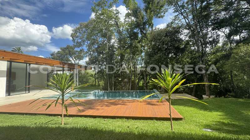 Uma casa moderna, que atenderia qualquer família que busca o contato com a natureza e o conforto de uma casa sofisticada e muito bem planejada. Piscina e spa com aquecimento solar, energia fotovoltaica, poço artesiano e cisterna de 10 mil litros.
