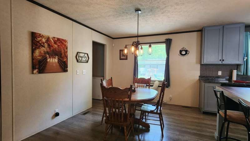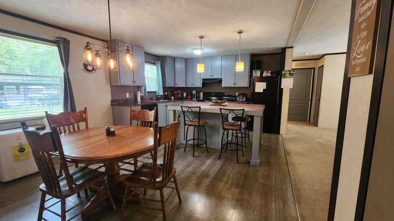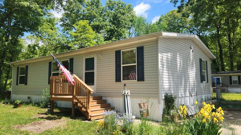 Country charmer located in ever popular Hopkins School District. Modern open floor plan. Huge kitchen island with seating and nice appliances; stove, refrigerator & dishwasher included. Mudroom and main floor laundry (includes washer & dryer) off kitchen w/EZ access to rear yard & shed. 3 beds and 2 full baths includes primary bed w/large private bath. Home was built in 2018, gutters w/gutter guards were installed in 2024 and has a transferable warranty/per seller. Nice, shaded lot and large cemented off-street parking. Very affordable living with quick possession possible. Come check it out! Disclosure: home is located in Sapphire Estates Mobile Home Park and transaction subject to park approval of the buyer prior to close. Park contact is Donna for any park info.