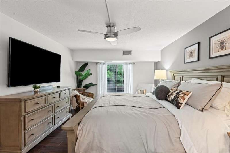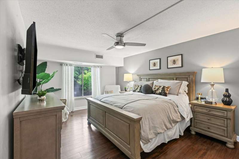 Get ready to be wowed by this stunning 2-bedroom, 2-bath luxury condo with underground parking in the highly desired Waters Edge of Hazel Crest, a 55+ Adult Community. The Sellers have completely transformed the unit with top-to-bottom renovations. Rich walnut-colored luxury vinyl flooring flows seamlessly throughout. Cozy up in the living room by the electric insert fireplace or step out onto the private balcony, conveniently accessible from the formal dining room. The bright and airy kitchen features white cabinets, stainless steel appliances, and a gorgeous backsplash. The primary bedroom suite boasts double closets, double vanities, and a walk-in shower in the elegant bathroom. The in-unit laundry area includes a spacious, side-by-side washer and dryer. All furnishings are negotiable! The HOA covers heat, water, parking, exercise facilities, a pool, sauna, exterior maintenance, and snow removal. Enjoy peaceful and picturesque surroundings!