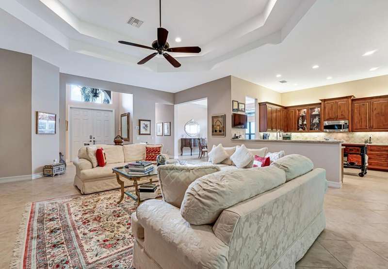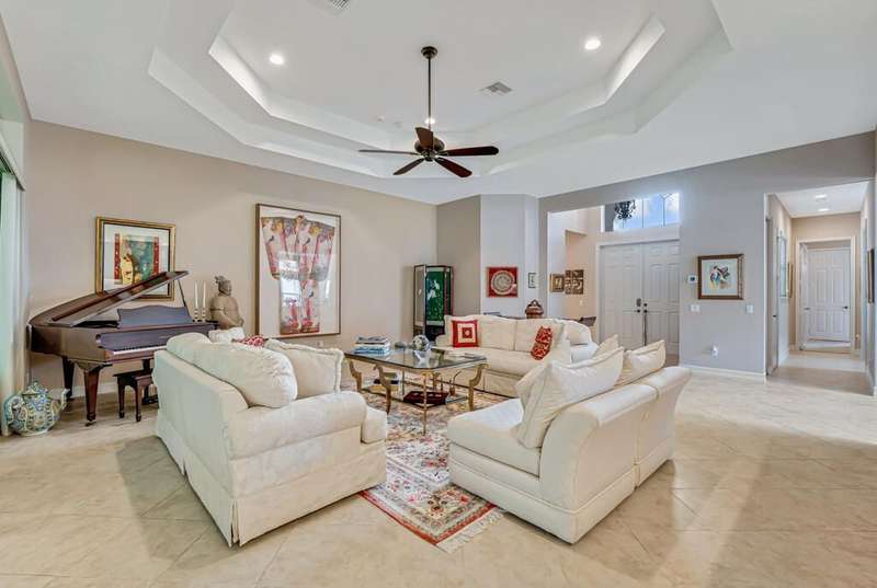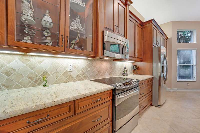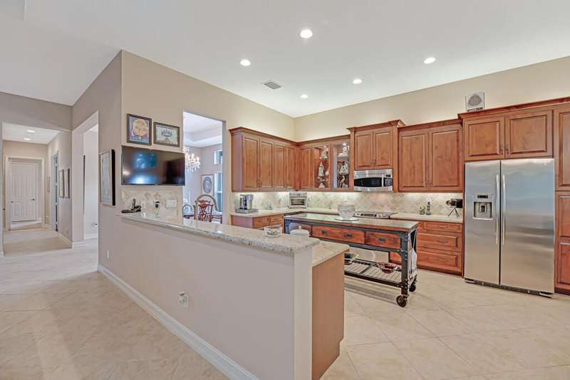 WOW! Best price opportunity! Pristine & immaculate, this home boasts high end finishings & lots of builder upgrades including walk in closet in Guest Bedrm with ensuite full bath! Almost 2700 sq ft under air! Beautiful solid wood high end cabinetry with light granite, stainless & screened lanai. So nice! Private, peaceful, serene backyard with room for a pool, no rear neighbors, quiet, not near any road noise! Perfectly situated,walk to the newly remodeled clubhouse,restaurant pickleball, tennis,bocce,pools, state of art fitness ctr,so much more! Beautiful curb appeal with grand courtyard entry adds charm & privacy! Enjoy this open &airy full of light floorplan at an amazing price!Huge owners suite with amazing closets! Bedrm 3 doubles as an office/den with high end wood floors. LOVE IT!