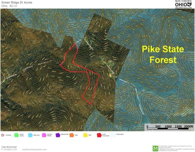 31 Acres of Remote Woods Adjoining Public Land in Northwest Pike County. Gravel Drive Leads to Secluded 12x16 Off Grid Fully Insulated Cabin w/Porch & Mile+ Long Views Across Valley Below., Trail System Throughout w/Isolated Bench Out Back of Property w/Small Water Hole & Clearing for Plot. A Rare Opportunity w/Property Directly Adjoining Pike State Forest Offering Endless Public Hunting Opportunities. Great Deer & Turkey Hunting or Bug-Out Property Located Amongst the Wooded Hills of Southern Ohio. No Utilities Available.
