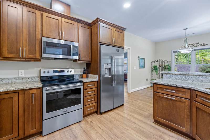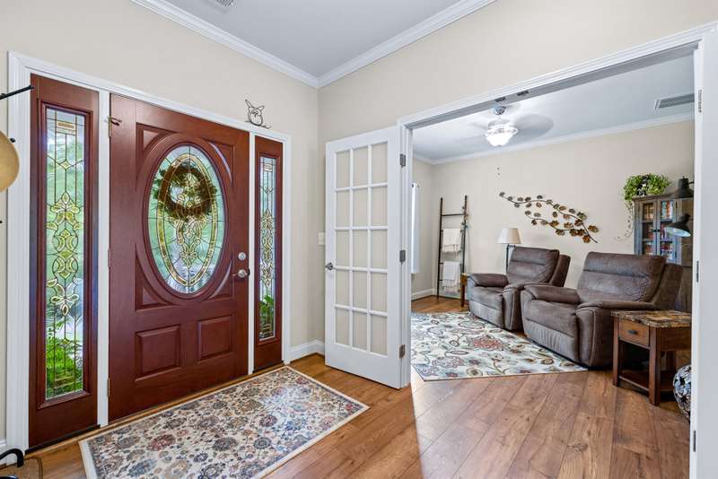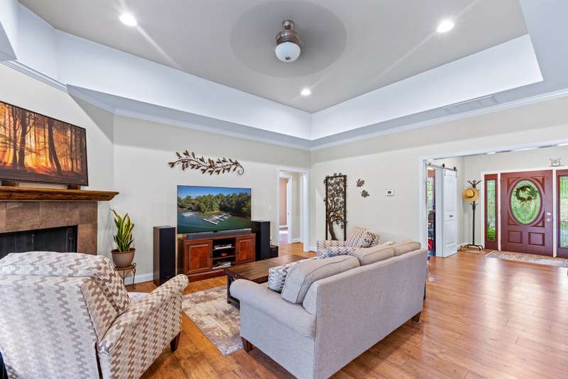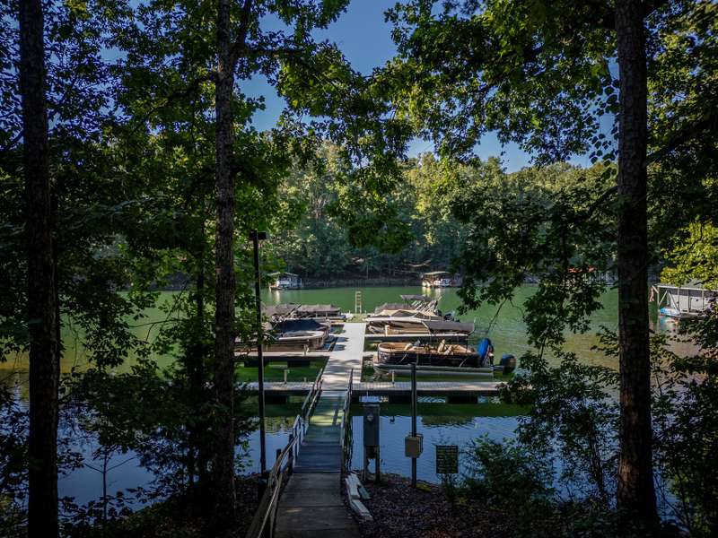 Welcome to 122 Woods Drive: Nestled in the desirable Woods at Lake Keowee, this property includes a deeded, deep water boat slip #14. Spanning 1.24 acres and constructed in 2019, this home emphasizes low-maintenance, single-level living. The open floor plan features a split-bedroom layout, ensuring privacy for both the owner and guests. Relax on the covered front porch or the back patio, taking in the views of the nicely landscaped grounds. The primary suite boasts two walk-in closets, double vanities, a jetted tub, and a spacious tiled walk-in shower. There are also two guest bedrooms, one equipped with twin Murphy beds, along with a full bath located on the opposite side of the house. This versatile floor plan offers numerous possibilities to accommodate your needs, including an office/4th bedroom and a formal dining room/den. The kitchen comes with a walk-in pantry, granite countertops, stainless steel appliances, and a breakfast area overlooking the back yard. Need storage? The property features an attached oversized two-car garage as well as a detached two-car garage with additional storage above (access door located at the back). The Woods at Lake Keowee community offers amenities such as a pool, clubhouse, tennis courts, and ample space for boats and RVs. Plus, it is conveniently located near dining, shopping, and healthcare facilities. The boat slips are located in a protected deep-water cove. The neighborhood allows swimming and fishing off the dock for your Lake Keowee enjoyment. See supplements for boat slip information and map.