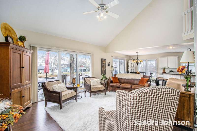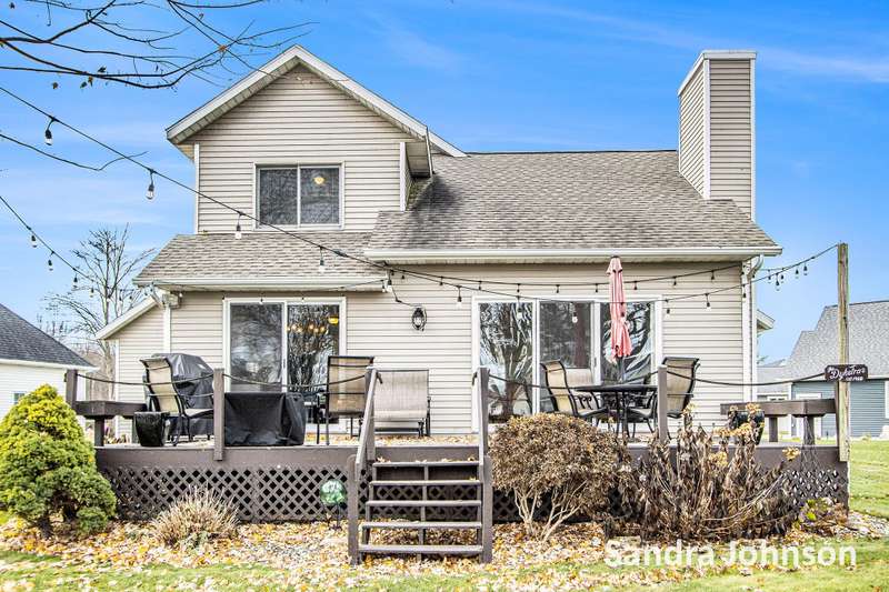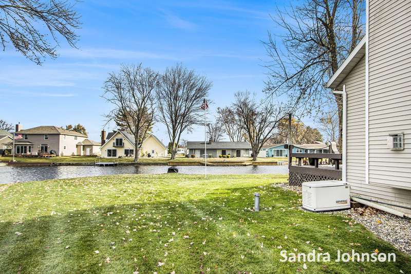 Discover this beautiful 3 bedroom, 2.5 bath home. Located on Gun Lake in one of the most highly desirable channel front neighborhoods. This well maintained home offers many updates, including new windows, sliders, and seawall, along with a newer roof, furnace, A/C, water heater, and stainless steel appliances. The open floor plan, featuring a cozy gas fireplace, is perfect for entertaining and enjoying amazing views, with two sliders leading out to the deck overlooking the channel with 130 ft of lake frontage. Enjoy added comfort with a whole house Generac generator, invisible fence, and an unfinished basement, plus potential for a bonus room above the attached 2 stall garage. Tucked at the end of a quiet cul-de-sac, this property sits on a large lot- an exceptional setting for relaxed lakefront living.