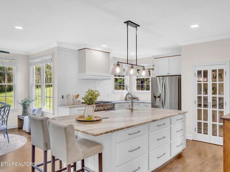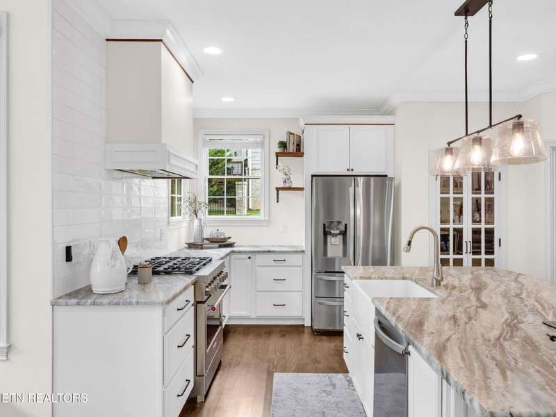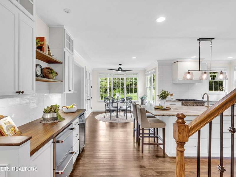 Welcome to Covered Bridge - one of Hardin Valley's most sought-after neighborhoods. This beautifully updated home offers over 3,600 sq ft of thoughtfully designed living space with 4 bedrooms, 3.5 baths, and upgrades throughout. At the heart of the home is a fully redesigned chef's kitchen built for entertaining, featuring an oversized island, farmhouse sink, 6-burner gas range, abundant custom cabinetry, stainless steel appliances, beverage center with refrigerator/freezer drawers, and a wine fridge. The open floor plan flows seamlessly from kitchen to living and dining areas, extending outdoors to a brand-new deck - perfect for gatherings. The main level includes a spacious primary suite with a spa-like bath showcasing a tiled shower and soaking tub, plus a versatile office/den with a cozy fireplace. Upstairs you'll find additional bedrooms, a reading nook with built-ins, and hidden storage that adds charm and functionality. This home truly has it all - modern design, luxury finishes, and a layout that fits every lifestyle. All within minutes of Hardin Valley schools, shopping, and just 30 minutes to Downtown Knoxville or McGhee Tyson Airport. Don't miss the chance to make this Covered Bridge gem yours. Recent professional improvements completed, including chimney updates overseen by a licensed structural engineer.
