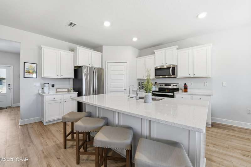 Luxury Coastal Living in WindMark Community - Welcome to 138 Pond Cypress Cove, a rare opportunity to own a fully furnished, turnkey coastal masterpiece in the highly sought-after WindMark Beach community. Perfectly positioned on a quiet cul-de-sac, this five-bedroom, three-bath Carol floorplan redefines coastal living with generous spaces, refined finishes, and effortless charm. Just beyond the backyard, residents can enjoy a short stroll along the boardwalk leading directly to the beach or spend sunny afternoons at the gorgeous community pool, located just steps away. From the second-floor bedrooms and bonus flex space, you'll enjoy peaceful, picturesque views of the water, creating the perfect backdrop for relaxation. Designed to comfortably accommodate up to twelve guests, this spacious retreat is ideal for personal enjoyment, a second-home getaway, or a profitable short-term rental investment. The main level welcomes you with an open-concept living area filled with natural light, enhanced by 9-foot ceilings that create an airy, spacious atmosphere and elevate the home's sense of openness throughout. The heart of the home is the beautifully appointed kitchen, featuring white cabinetry, quartz countertops, stainless steel appliances, and an island with seating-perfect for entertaining family and friends. A versatile multi-purpose room on the first floor offers the option of a private office, media room, music room or formal dining space, while a guest bedroom and full bath provide comfort and convenience for visitors. Ascend the stairs to the second level, where you'll find four additional bedrooms, including the luxurious primary suite, which features a private sitting area, spa-inspired ensuite bathroom, and an expansive walk-in closet. A shared bath and a spacious upstairs flex or lounge area offer plenty of room for everyone to unwind and take in the serene water views from above. Outdoor living is all about connection and convenience. The backyard offers direct access to the community's resort-style pool and boardwalk to the beach, making it effortless to enjoy all the recreational amenities of WindMark Beach. Life in WindMark Beach offers the perfect balance of luxury and leisure. This golf cart-friendly community features two resort-style pools, a vibrant Village Center with waterfront dining, boutique shopping, live music, and a state-of-the-art fitness center. Meandering boardwalks and nature trails wind through the community, inviting residents to explore the area's unspoiled coastal beauty. Located just minutes from historic downtown Port St. Joe, residents can savor the charm of a small coastal town with modern conveniences, from local restaurants and boutique shops to lively community events. Whether you're seeking a luxurious primary residence, a perfect second-home getaway, or a profitable short-term rental investment, 138 Pond Cypress Cove delivers the ultimate coastal lifestyle-where every day feels like a getaway. **More professional photos forthcoming.