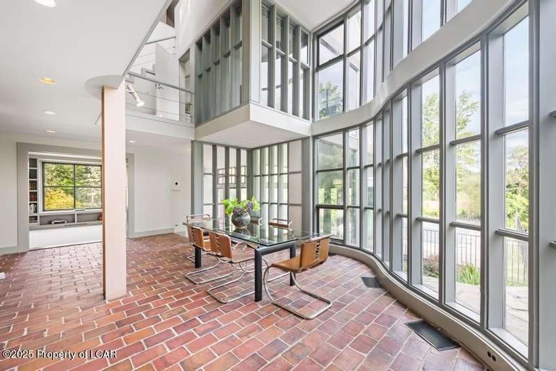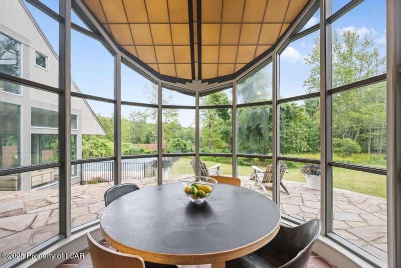 This striking 3-story, 4 bedroom, 6 bath residence was designed by world renowned architect Peter Bohlin. Impressive walls of glass, columns of steel and intricate millwork create light-filled living space with serene views of the stone patio, pool, perennials & surrounding woods. The 4-acre setting and attention to detail throughout blend timeless harmony of design, comfort and landscape.
