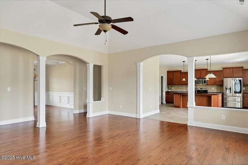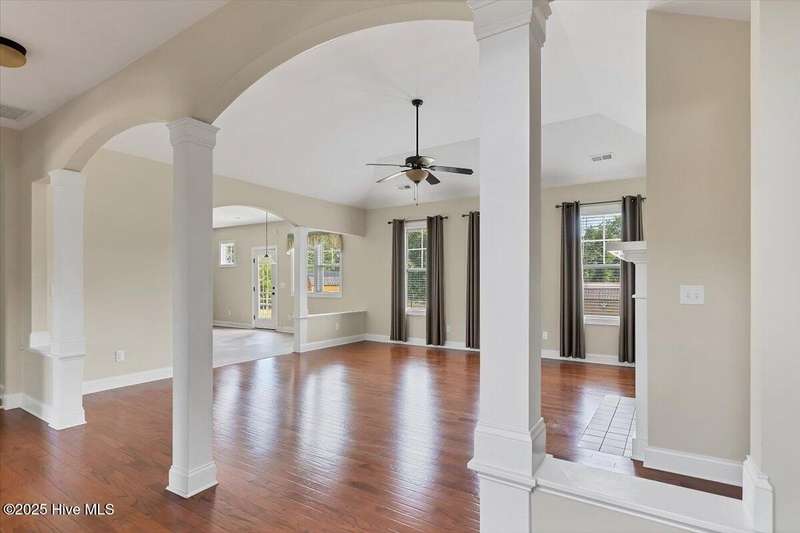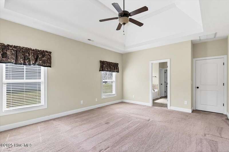 Nestled in the highly sought-after Meadows at Farmlife, this stunning 4-bedroom, 3.5-bath home offers comfort, space, and style on a generous 0.74-acre lot. Easy 30 minute commute to Ft. Bragg, 15 minutes to downtown Pinehurst & Southern Pines. With over 3.300 sq ft, this is the best value in Moore County! Enter through a welcoming two-story foyer that opens to a striking staircase and a formal dining room with elegant coffered ceilings. The living room features vaulted ceilings and large windows that overlook the backyard, creating a bright and open space connected seamlessly to the kitchen and breakfast area. The kitchen is a large gathering space complete with granite countertops, stainless steel appliances, ample cabinet space and a walk-in pantry. Featuring the master bedroom on the main level with a bathroom that includes separate vanities, a walk-in shower, garden tub, and a generous walk-in closet. Upstairs, you'll find three additional bedrooms—one with its own ensuite bath—plus a large bonus room, a full hall bath, and a walk-in attic offering convenient storage space. Outside, enjoy peaceful views of the large backyard that backs up to a small pond, along with a 28' x 12' workshop—ideal for hobbies, storage, or a home project space. Major updates include a brand new HVAC in 2024 and a new water heater in 2025. Don't miss your chance to call this beautiful home yours!