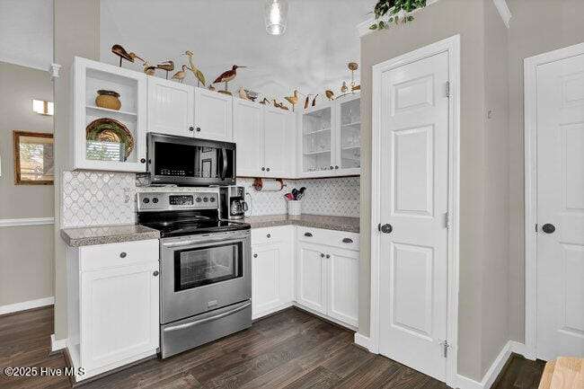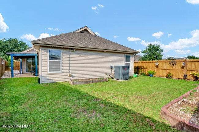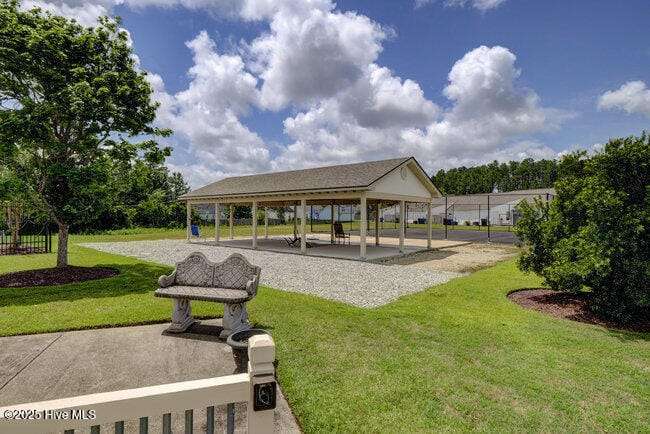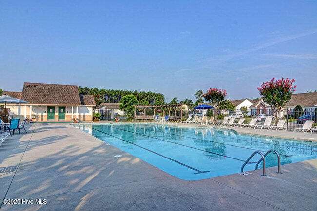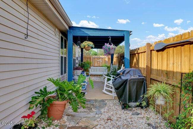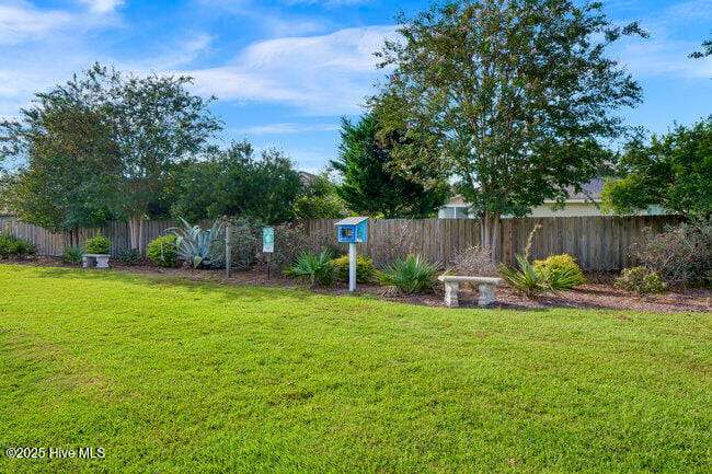 Welcome home to this beautifully updated one-level patio home with an inviting open floor plan and soaring ceilings. Fresh interior paint and easy-care LVP flooring run throughout, with tile in the baths. The kitchen shines with hard-surface countertops, stainless appliances (refrigerator included), abundant cabinetry with glass-front accents for your favorite dishware, and a designer tile backsplash, plus a new breakfast bar perfect for casual dining. The living area is anchored by a stylish electric fireplace with shiplap surround, creating a cozy focal point. The spacious primary suite offers two closets, including a walk-in, and a refreshed bath with granite vanity, shower with seat, and linen closet. A split-bedroom design provides two additional bedrooms, one currently used as an office. Outdoor living is so enjoyable with two covered patios and a freshly power washed and sealed fenced yard. Additional features include a two-car garage with pull down attic access, generator plug-in, roof (2018), HVAC (2019), and water heater (2011). Washer and dryer remain. Ideally located on a corner lot just steps from the neighborhood pool, tennis, and a charming little park with a ''little library.'' across the street. Truly move-in ready!