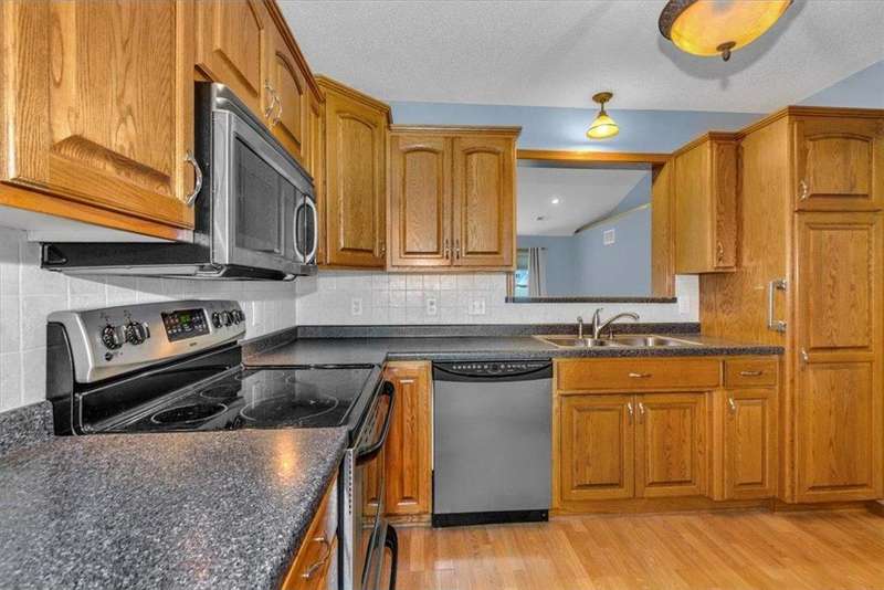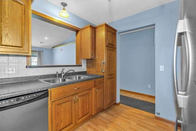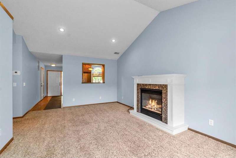 This charming single-level townhome offers 2 bedrooms and 2 bathrooms across approximately 1,206 square feet of thoughtfully laid-out living space, enhanced by vaulted ceilings and a cozy gas fireplace in the bright and open great room. The primary bedroom features a walk-in closet, while a picturesque bay or bow window in the kitchen floods the interior with natural light and adds architectural interest. With an inviting ambiance, the property includes a convenient two-car attached garage. Nestled within the Edgewater Estates community, this townhome pairs comfort and low-maintenance living with access to neighborhood charm.