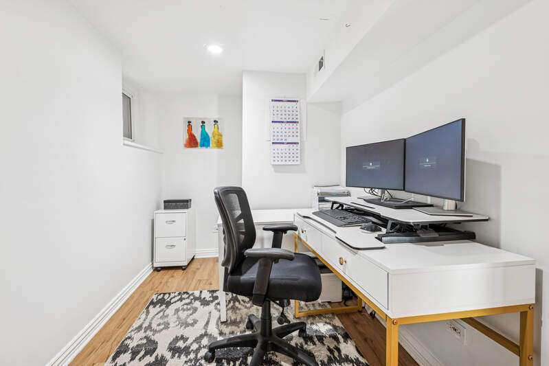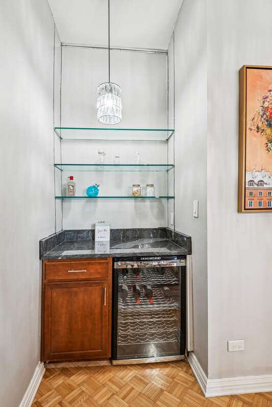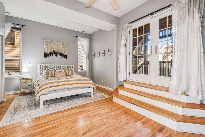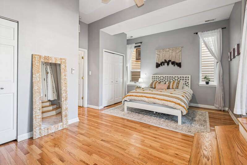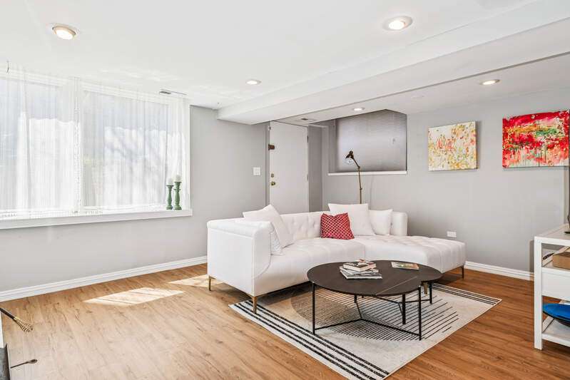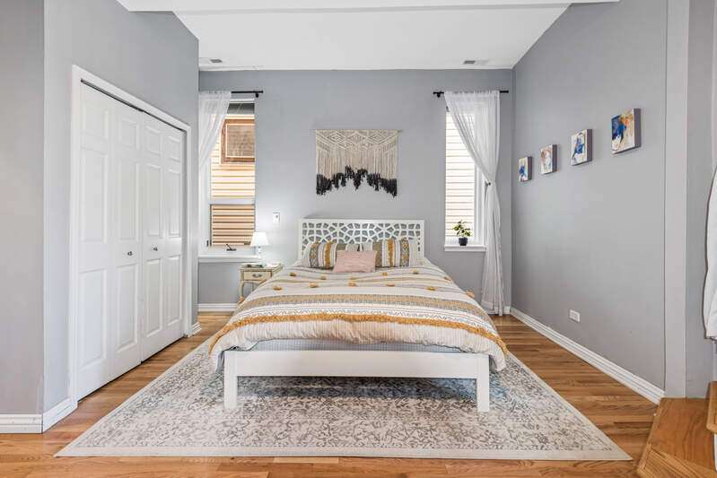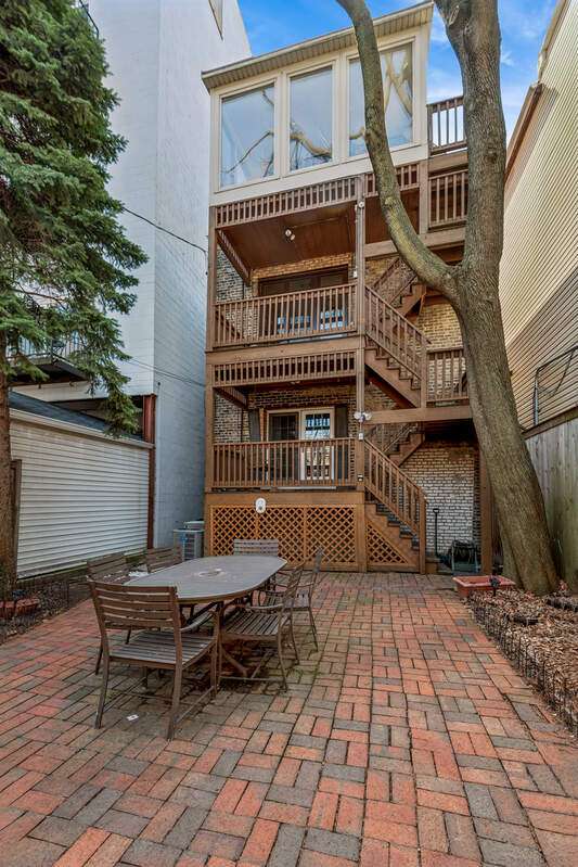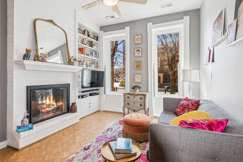 RARELY AVAILABLE LAKEVIEW DUPLEX! Welcome to this spacious and bright 2BD/2BA + den duplex down in a charming 2-unit building. Thoughtfully maintained and full of character, this home features two private outdoor spaces, a shared patio, and access to a rooftop garage deck-ideal for entertaining or relaxing. Step inside to find hardwood floors throughout the main level and a welcoming living room with a wood-burning fireplace next to a custom, hand-crafted built-in bookcase that feels original to the home. The separate dining area includes a dry bar with a wine fridge-perfect for hosting. The kitchen offers stainless steel appliances and granite counters. Downstairs, you'll find a generously sized family room with luxury vinyl plank and tile flooring, another cozy fireplace, and abundant natural light. The updated lower-level bathroom adds a modern touch, and the full laundry/utility room includes a newer washer and dryer. Zoned HVAC provides comfort year-round. One deeded parking space is included. All this just one block from the Diversey El and steps to local favorites-gyms, shops, dining, and more. This home checks all the boxes for space, charm, and unbeatable location.