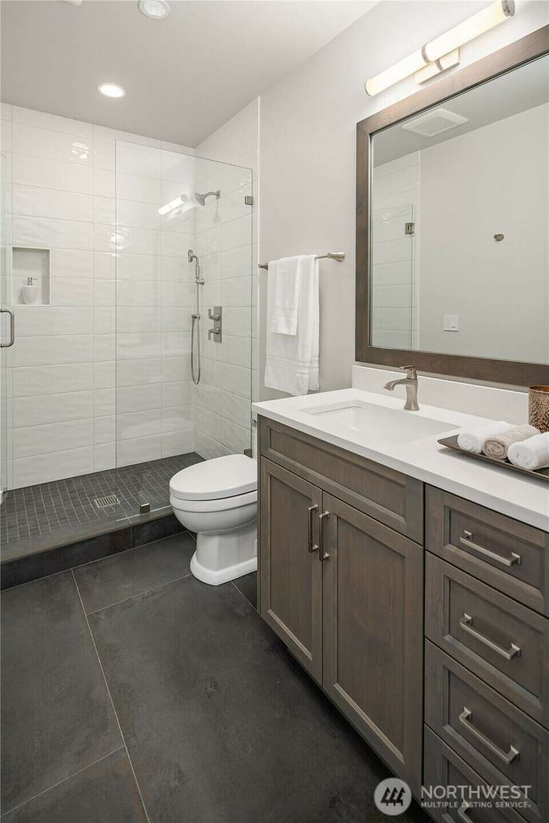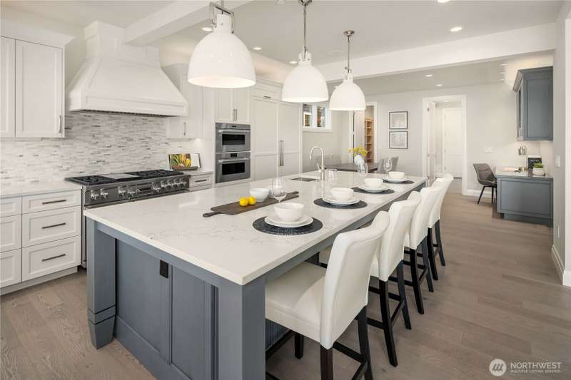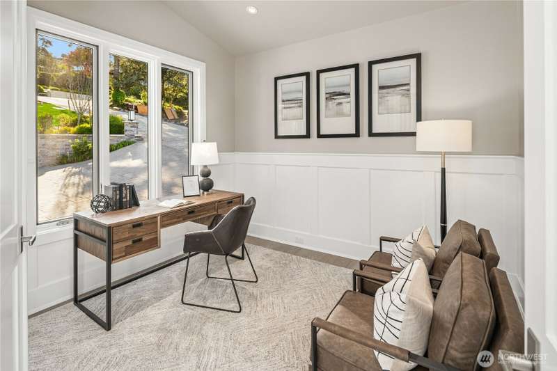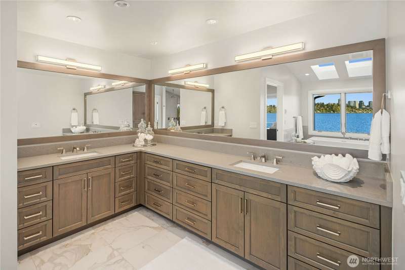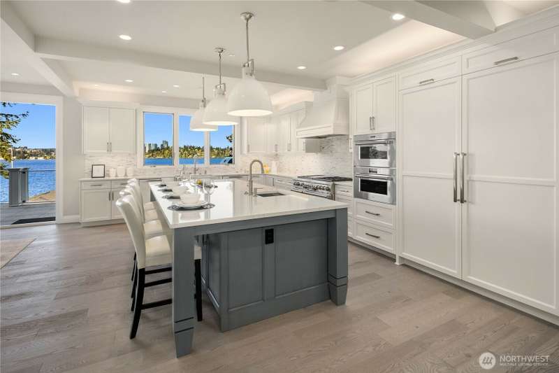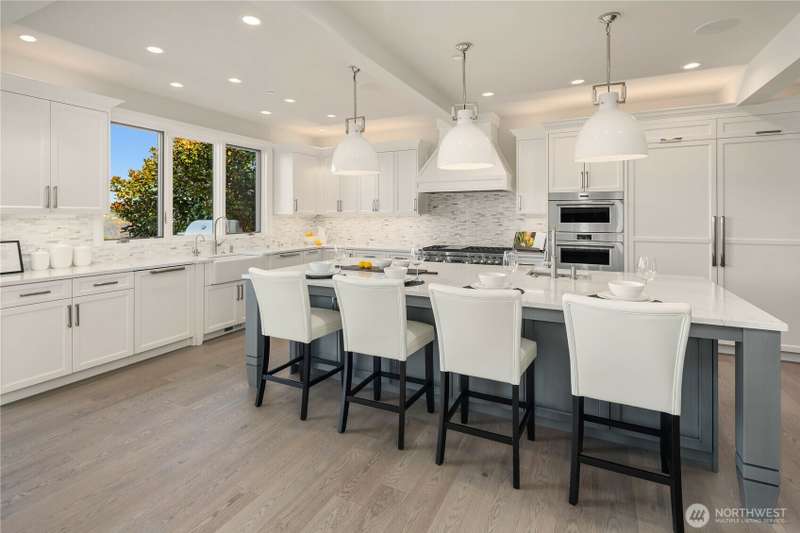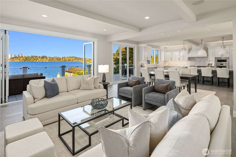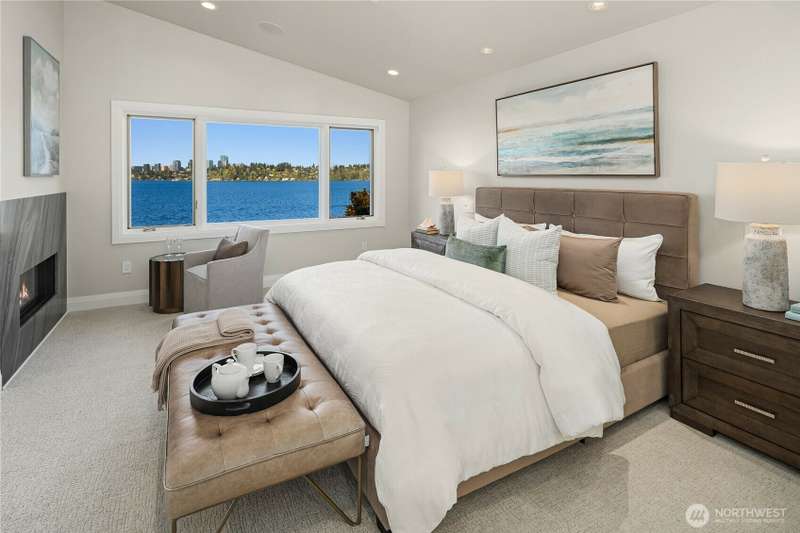 A spotless and stunning new-construction home. Sited on the conveniently located north end with easy access to downtown Mercer Island, I-90, Bellevue and Seattle. Captivating lake and city views! Live exceptionally in this perfectly crafted masterpiece, featuring a great room concept with dramatic views which opens to an expansive deck with built-in barbeque and cooking station, two designer kitchens, ensuite bedrooms and the finest fixtures and finishes. High tech and high concept; wired for servers, generator, speakers and blinds. High tech security system. Garage has three outlets for EV charging. Multiple decks and patios present spot-on views of Bellevue's gleaming skyline and fireworks from summer celebrations.