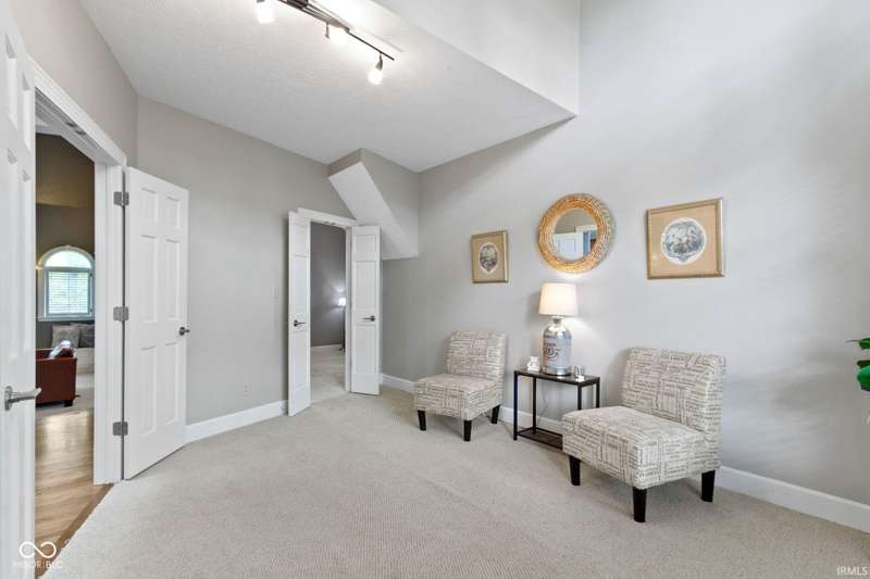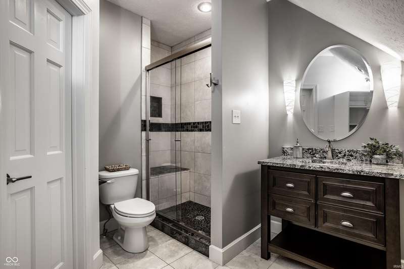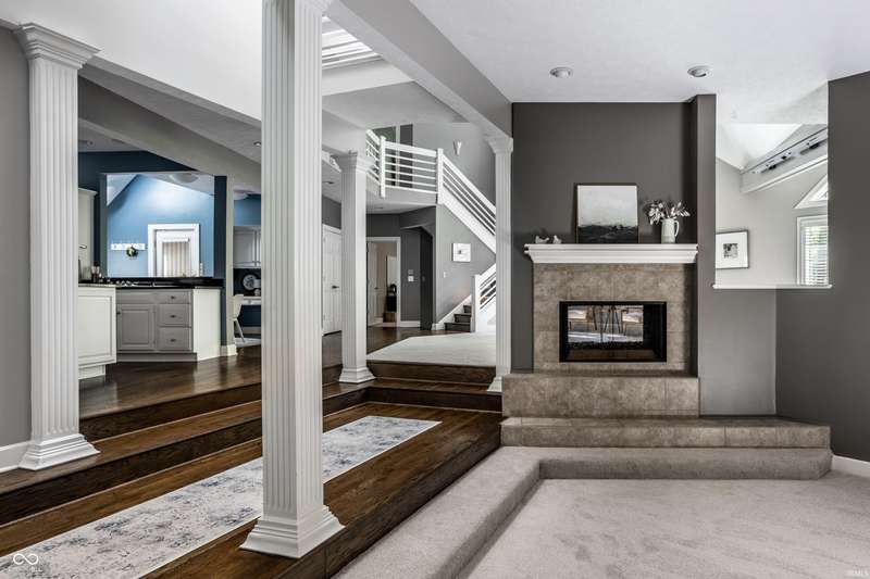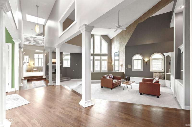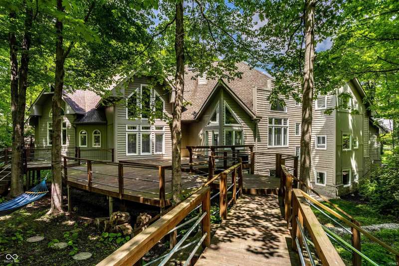 Nestled in the prestigious Geist neighborhood of Feather Cove III, this contemporary, architect-designed residence offers a serene oasis on just over half an acre wooded lot. Just a quick stroll from Geist Reservoir, this home boasts glass floor to ceiling front doors and an expansive two-story great room with magnificent windows that create a bright and airy atmosphere. The sunken formal dining room, two-sided gas fireplace and open floor plan further connecting the kitchen and hearth room makes this home perfect for entertaining. The primary suite is located on the main floor and includes a spa-like private bath, two walk-in closets and connects to a flex room, perfect as a den or nursery. The gourmet kitchen is equipped with granite countertops, stainless steel appliances, white cabinetry, built in banquette with enough space for casual everyday dining. Additionally, the home has an upstairs loft area perfect for meditation or as a kids' playroom, large attic area over garage accessible from 2nd floor, walk out basement with exercise room and additional hang out space, huge 3 car garage, dual zone heating/cooling for comfort, whole home water filtration system, whole home humidification system plus the reliability of a new whole home Generac generator. This exceptional property combines luxurious living with the tranquility of nature, making it a rare find in the Geist Reservoir area. Nearby shopping, dining, walking path and school options, such as the "A" rated Amy Beverland Elementary, St Simon, Horizon and Holy Cross schools, make this home a winner!