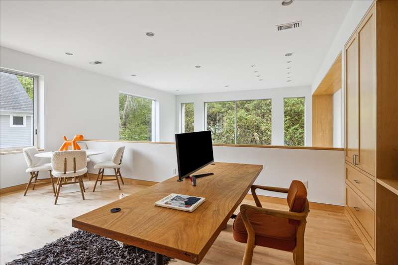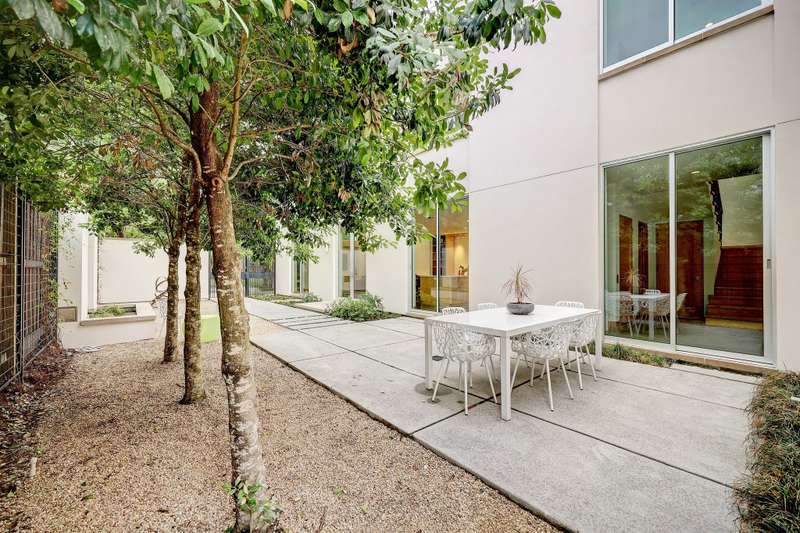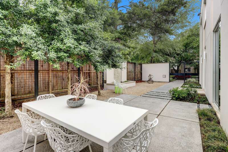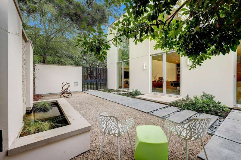 Tree top views from this lovely soft contemporary in Southampton Place. Three car garage/workshop, elevator, open living and dining, and courtyard with fountain and mature trees. Close proximity to Rice Village, Rice University and the Texas Medical Center. Well respected custom builder’s own home, this clean contemporary with extensive architectural millwork and a carefully designed floor plan, provides an easy living low-maintenance lifestyle. Sub-Zero refrigerator and freezer, wine refrigerator, Wolf range, tankless water heater, steam shower and climate controlled storage closets in the garage for gear. Also featuring, two story ceilings, expansive windows that open to a courtyard, concrete floors throughout first floor and maple hardwoods on 2nd floor. The large study/project room has an amazing view for working at home. This home is one of kind and an exceptional offering. Per Seller