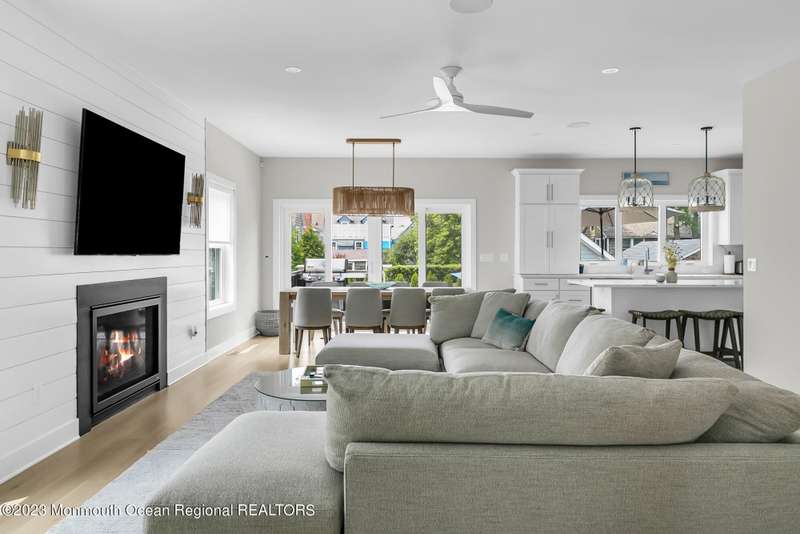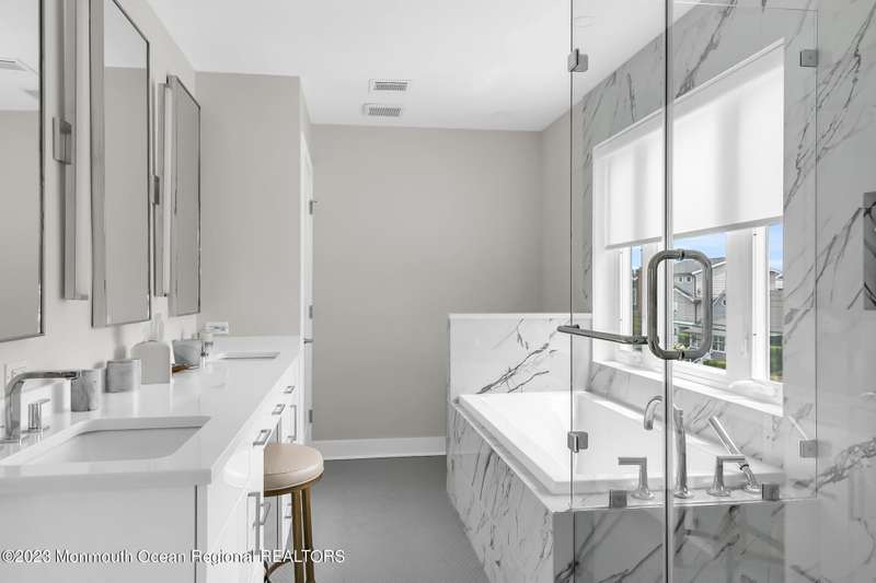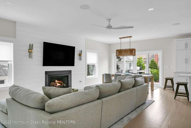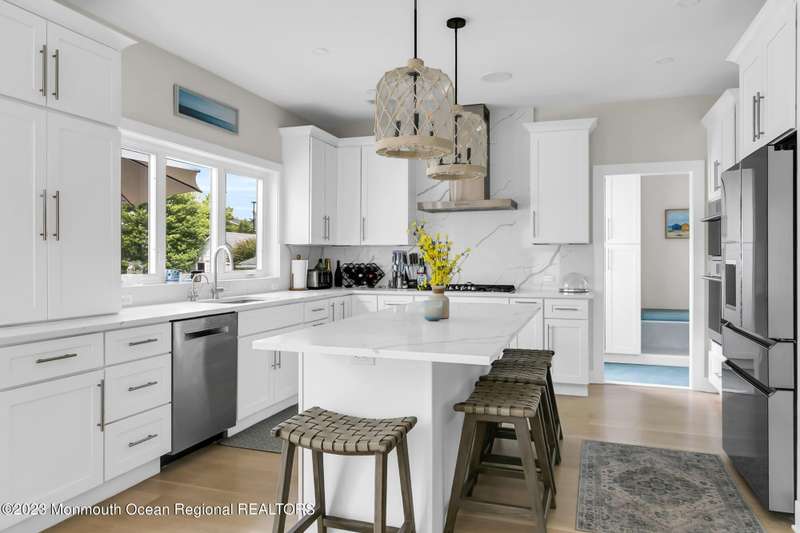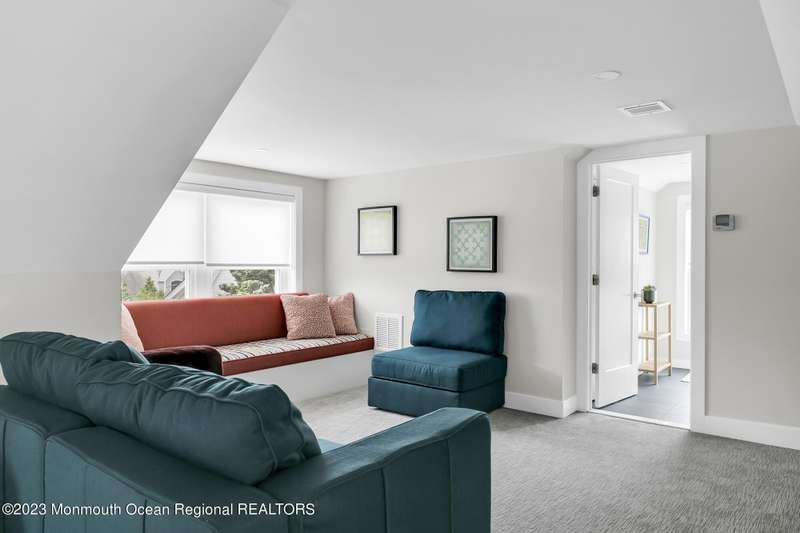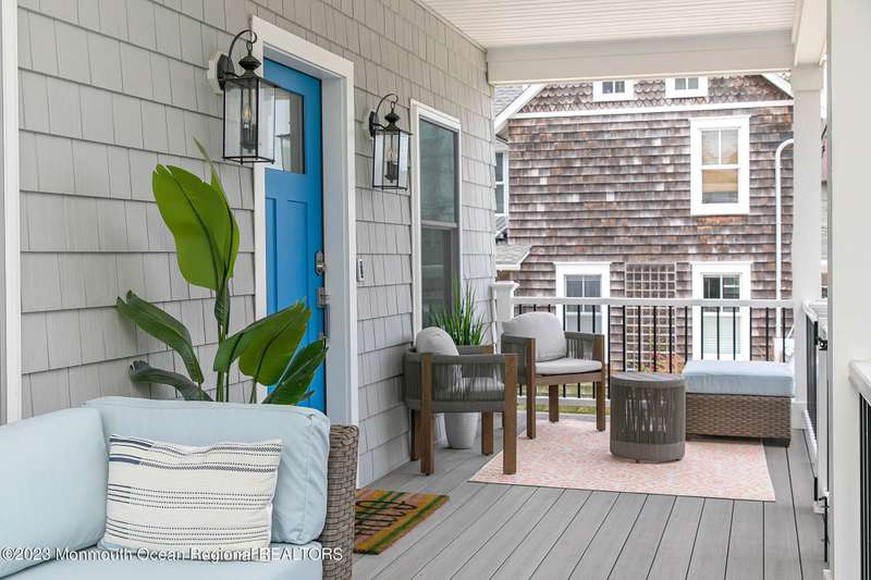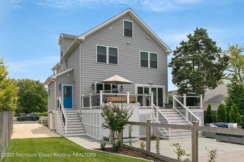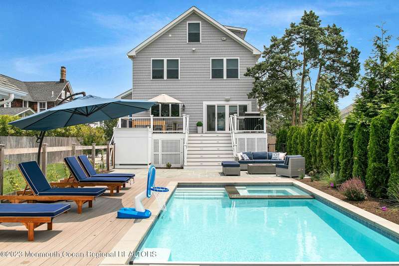 WEEKLY RENTAL:Brand new home in the heart of Bay Head! Features include an open floor plan, covered front porch, large rear deck, backyard pool, and ample parking. There are 3 bedrooms and 2 baths on the second floor, including the master suite, plus additional bedroom space and another full bath on the third floor (4 beds, plus a seating area). Sleeps 14. Walk or bike to any part of town - the shops, restaurants, beaches, and more! 6 beach badges are provided, as are 6 beach chairs. Bikes are also available for your use. Relax by the pool, or enjoy the hot tub! Other features include a gas grill and outdoor speakers. Pets are not permitted. Now considering 2025 rentals, $16,000 per week. Utilities are not included. **Owner prefers August dates, but might consider late July.
