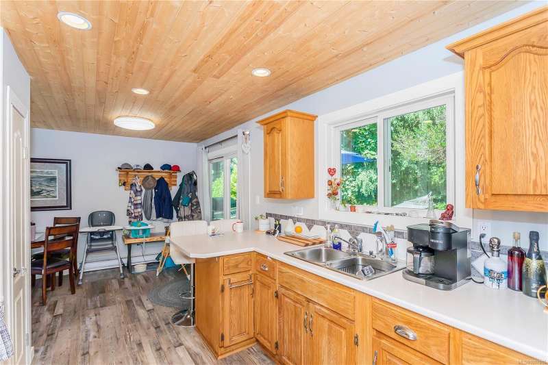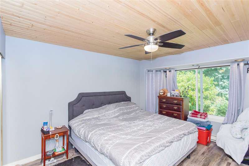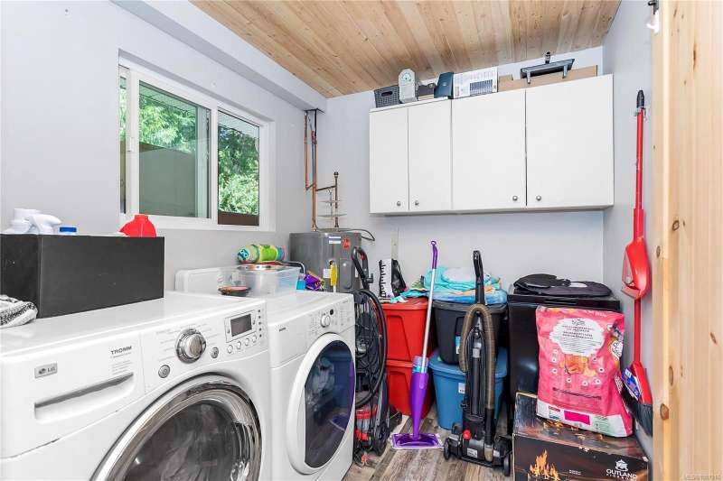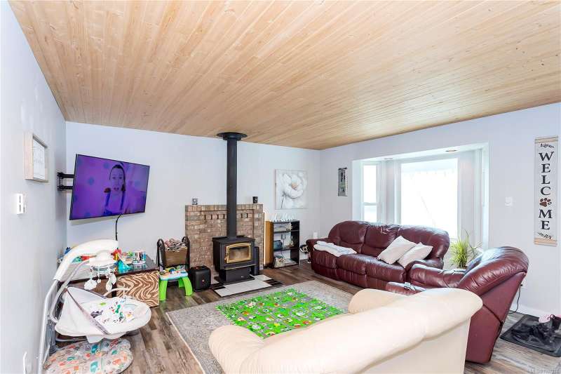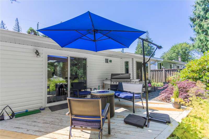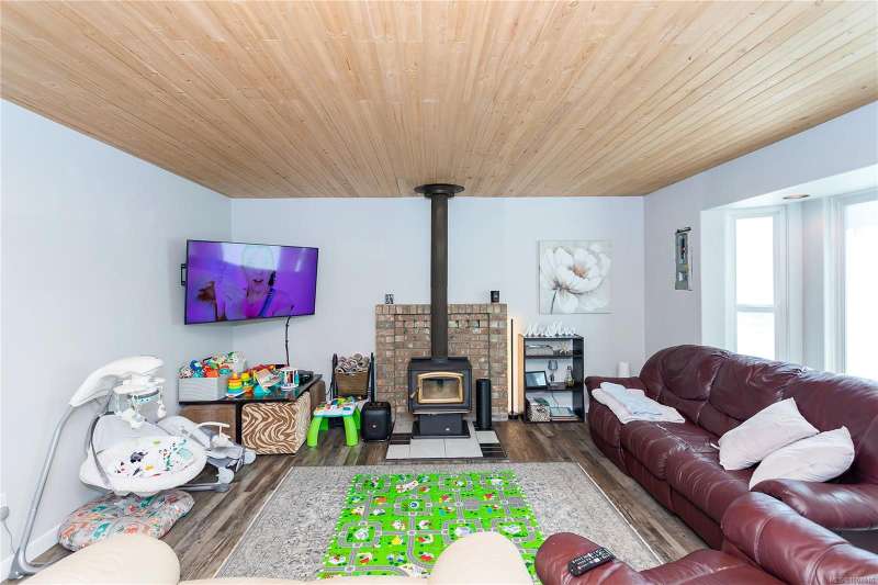 Welcome to this charming 3-bedroom, 2-bath rancher in a desirable North Nanaimo location! This well-maintained home features updated laminate flooring throughout and a bright, open-concept living and dining area with a cozy wood stove. The functional kitchen flows seamlessly to the private patio and a beautifully landscaped backyard, complete with mature greenery, a peaceful creek, a quaint little bridge, and two storage sheds. The primary bedroom includes a walk-in closet and a 3-piece ensuite with a luxurious hot tub. Two additional bedrooms offer space for family, guests, or a home office. Comfort is ensured year-round with an efficient heat pump system. Ideally located just minutes from the natural beauty of Neck Point Park and Pipers Lagoon, this home offers the perfect balance of tranquility and convenience. Don't miss this inviting West Coast retreat!