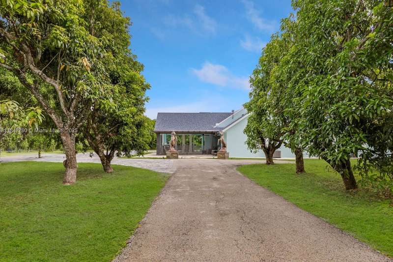This impressive 10-acre Redland estate was meticulously constructed in 2017. It includes a 1,400 sq ft guest house. The primary residence spans over 5,583 sq ft with impact doors & windows. It features 4 bedrooms, 4.5 bathrooms, an office and a 2 car garage. Formal dining and living room has a built-in bar area, offering an elegant space. Each bedroom includes a private bathroom and walk-in closet. The chef's kitchen with solid wood cabinets and exquisite white quartz countertops. The expansive family room leads to an outdoor built-in BBQ and patio area. Travertine patio floors, pool, and fireplace area, ideal for hosting guests. This estate offers the privilege of residing in your own private paradise with a variety of tropical plants that allow you to experience nature at its best.