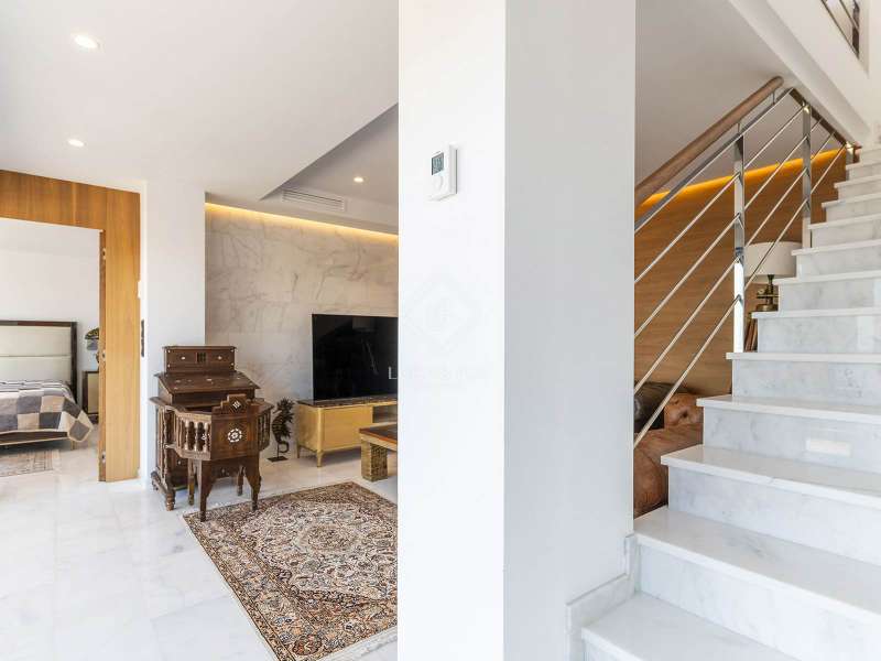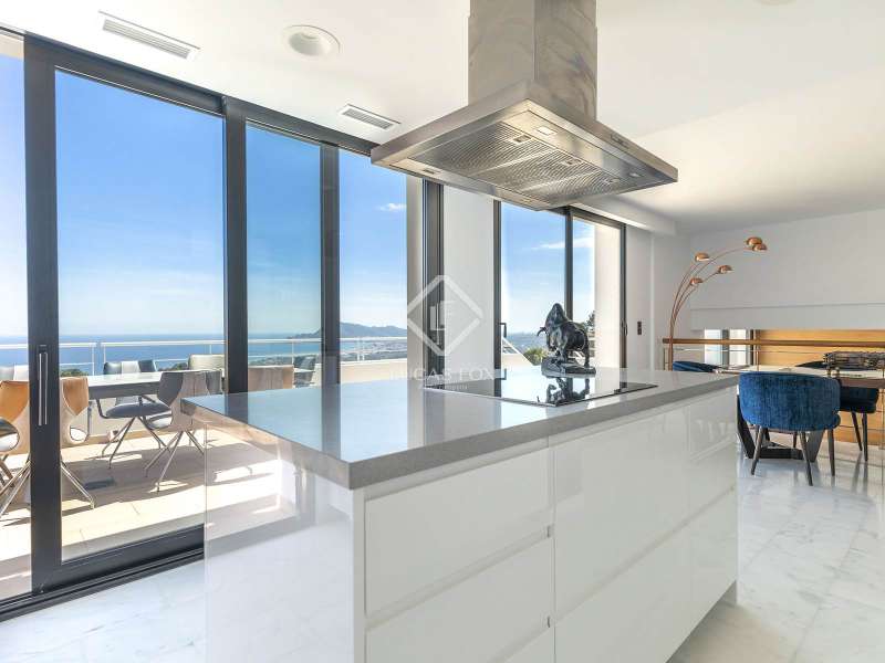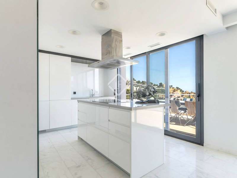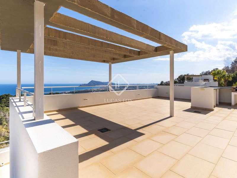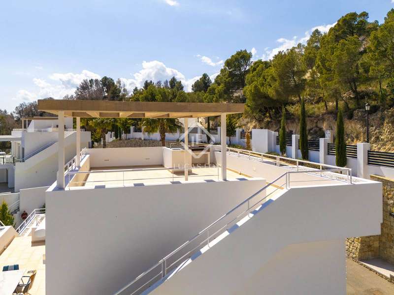 This impressive villa is located in one of the most exclusive areas of Altea, within a gated community with 24-hour security, guaranteeing privacy and tranquility. Its privileged location offers unbeatable panoramic sea views, creating a unique atmosphere of serenity. Built in 2018 to the highest standards, the property boasts a constructed area of 241 m² and 194 m² of terraces, where you can enjoy the natural surroundings in all their splendor. On the first floor, the villa offers an open-plan kitchen with an island, designed to seamlessly connect with the dining room. Large sliding windows provide direct access to a spectacular terrace with sea views, creating a seamless blend of interior and exterior. On the mezzanine, we find an elegant formal living room and a spacious double bedroom with an en-suite bathroom , providing a private and cozy space. The ground floor houses a second, more informal and private living room , ideal for relaxing moments. This floor access to two large double bedrooms with en suite bathrooms. All bedrooms open onto a second terrace that connects directly to the pool area, offering an ideal setting for enjoying the outdoors. The property's rooftop is a true gem. With a large sun terrace and exterior kitchen, this space is designed to enjoy the most spectacular views in complete privacy and comfort. The villa boasts all the amenities one would expect from such a high-end property, including underfloor heating, ducted air conditioning, an alarm system, and electric blinds and curtains. It also has two private parking spaces, adding further convenience and exclusivity to this exceptional property. A unique opportunity to live in an exclusive setting, with luxury, comfort, and views that make every day a special experience.