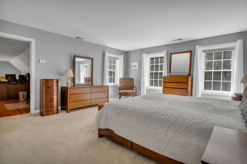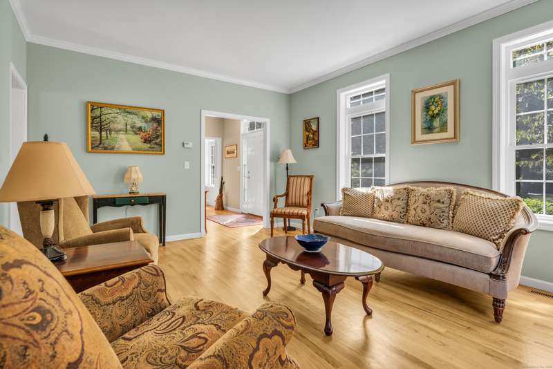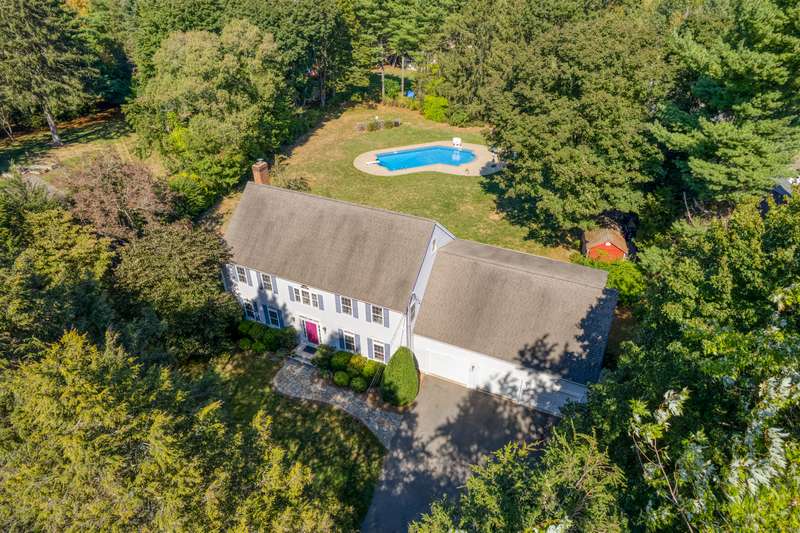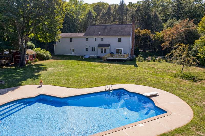 Welcome home to this spacious 4 bedroom colonial just minutes from downtown Guilford. You will be drawn in immediately to the heart of the home, a family room that opens to the kitchen and overlooks the picturesque backyard. High ceilings, crown molding, hardwood floors all add to the feeling of openness and space. The wood-burning fireplace creates a cozy atmosphere for those cool nights to come. A comfortable eat-in kitchen includes a double oven and an induction cooktop, conveniences that will make entertaining and your daily life easier. Upstairs are the bedrooms and the laundry room, plus a huge bonus room that extends over the entire 3 car garage. If you need even more space, head up to the giant, currently unfinished, walk-up attic or the partially finished basement. And then the outside, it is hard to imagine a more perfect backyard setting! A private, quiet oasis, the fenced, level yard has a gorgeous in-ground pool. The back deck is brand new. All of this in a location that i