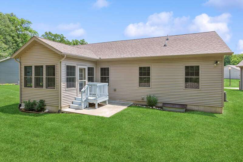 Custom built and meticulously maintained ranch boasts a 4 season room and open floor plan with hardwood floors thoughout Many upgrades! Beautiful kitchen with stainless appliances and quartz countertops. Primary suite with attached bath features a low threshold tiled shower and spacious walk-in closest with built-ins. 2nd bath with newly installed $18,000 walk in tub. EV hookup and more. Main floor laundry and full basement with built-ins ins for storage add to appeal. Quiet neighborhood with sidewalks and street lights on one road cul-de-sac is conveniently located near restaurants, shopping, Notre Dame and only 90 min. form Chicago. Association fee covers lawn care and snow removal. Discover carefree living at Carefree Villas today!