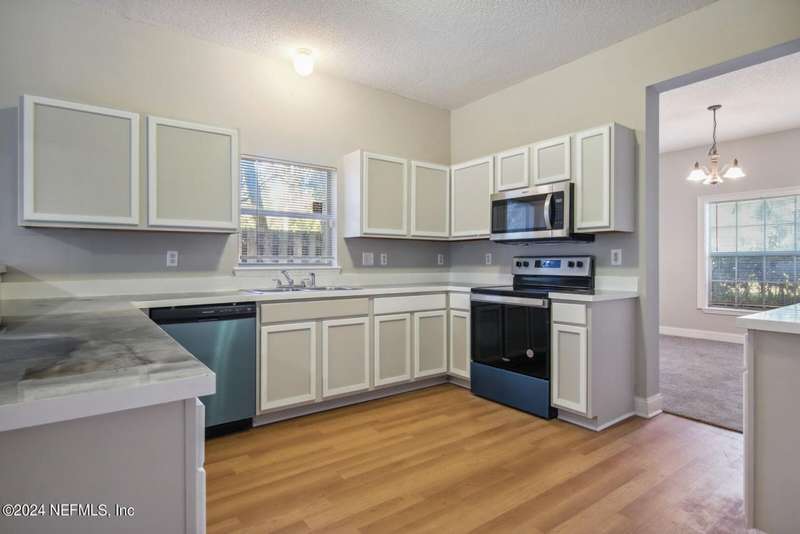 This home qualifies for 100 PERCENT financing and no PMI with $10,000 in closing cost credit with preferred lender for qualified applicants! New Roof to be installed before closing! Beautiful 2 story home with updated bathrooms and kitchen. The large foyer opens to the living room and separate formal dining area. Airy kitchen has new stainless steel stove. dishwasher and microwave. Breakfast room opens to the covered patio area. There is a huge pantry with ample storage. In addition, there is a laundry room and half bath on the 1st floor. Upstairs are 4 bedrooms including a large master suite with a sitting area. Just minutes from Oakleaf shopping!