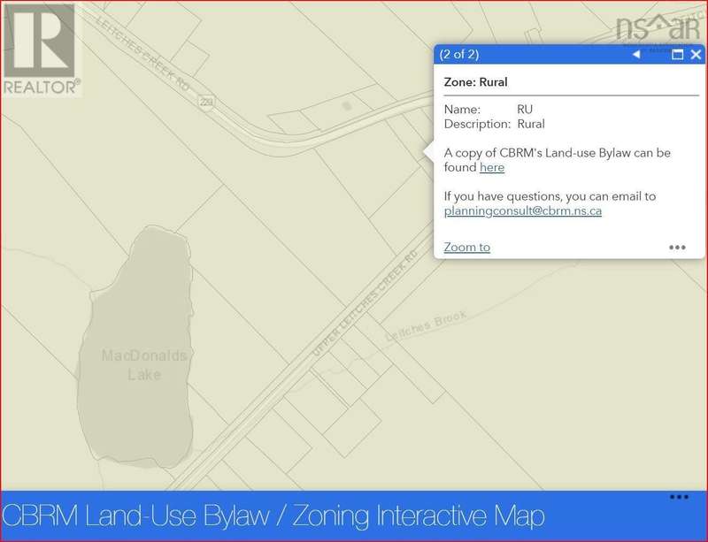 Located on Leitches Creek Road (Highway 223), this 1.65-acre lot offers a peaceful and private setting in the quiet community of Leitches Creek, part of the Cape Breton Regional Municipality. The property features approximately 300 feet of road frontage with a driveway already installed (currently overgrown) but visible and ready for use. Power and Fibre Internet are available at the roadside, making this lot ideal for building your dream home. Zoning is Rural, allowing for residential development. Municipal water and sewer services are not available in this area, and a well and septic system are common solutions for rural living. Despite its tranquil setting, the property is conveniently located just 10 minutes to North Sydney and about 15 minutes to Sydney River, providing easy access to grocery stores, pharmacies, and a variety of local shops and services. Listed at $78,000, this property offers an excellent opportunity to enjoy both privacy and proximity to amenities. Please see the listing photos for approximate lot boundaries and shape. Full listing details on REALTOR.ca: MLS® 202506987 Location coordinates (copy/paste into browser): 46.143255°, -60.373774° (id:2494)