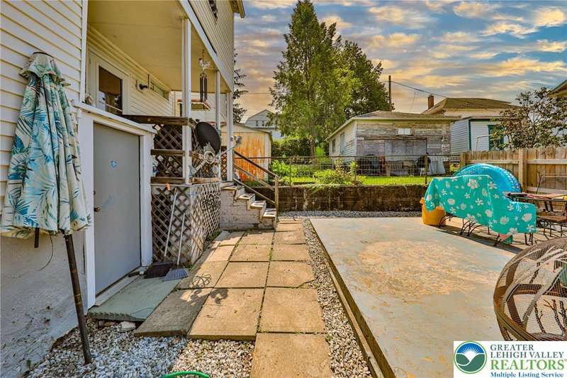: Well maintained home in South Scranton with a front porch, and a fenced yard, lower level laundry, kitchen (with an eat-in option), and a dining area.Nice size living room with hree bedrooms, and two full bathrooms. This house is close to the schools and it is in the heart of Scranton. You can walk out from the kitchen to the fenced in yard. You an walk out of the basement. The street is the alley behind Maple. The house is in the rear.