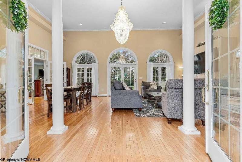 Experience luxury one-level living in this all-brick home on a private 1.34+/-acre lot in the Cheat Lake area. Featuring soaring ceilings, expansive windows and refined design throughout, this 4 bedroom, 4 full and 2 half bath residence offers comfort and sophistication. The primary suite includes a sitting room with fireplace, private laundry and multiple closets. Each guest suite enjoys access to a full bath. Entertain effortlessly with 3 fireplaces, 2 wet bars, a finished lower level and multiple outdoor living spaces. A 3-car oversized garage provides ample space for vehicles, storage and work area. Conveniently located near Cheat Lake, shopping and I-68, this exceptional property blends elegance, privacy and convenience.