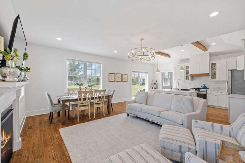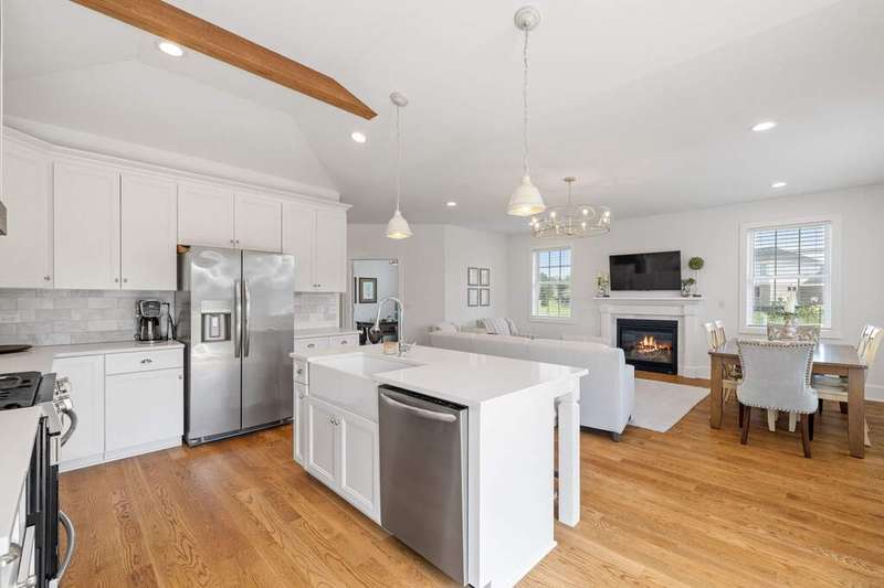 Better than new construction, this stunning duplex in the sought-after Sunset Lakes subdivision offers luxury, low-maintenance living at its finest. Built in 2021 and meticulously upgraded throughout, this home is 4 years young and shows like a model, but better. Situated on a premium lot at the end of a quiet dead-end street, you'll love the privacy and expansive green space surrounding the home. Inside, you'll find 2 spacious bedrooms plus a dedicated office/flex room, 2 full bathrooms, and an open-concept kitchen and living area designed for both everyday comfort and entertaining. No corners were cut in the design, this is not your standard builder-grade home! From the moment you walk in, you'll notice the white oak hardwood flooring running throughout the entire main level. The stunning kitchen boasts custom cabinetry, exposed wood beams, marble backsplash, quartz countertops, and stainless steel appliances. The kitchen flows seamlessly into the living and dining area which is complete with a cozy gas fireplace. The primary suite is a true retreat, featuring his-and-hers closets and a show-stopping en-suite bathroom with a glass walk-in shower and a separate soaking tub. The second bedroom is generously sized, and the office/flex room offers flexibility to be used as a third bedroom, playroom, or anything else you need. Main level laundry adds to the ease of living, and the full unfinished basement with roughed-in plumbing offers endless potential for future expansion. Enjoy true low maintenance living with the HOA covering all exterior maintenance. If you're looking for a high-end, move-in ready home that combines luxury finishes with easy living, this one checks all the boxes.