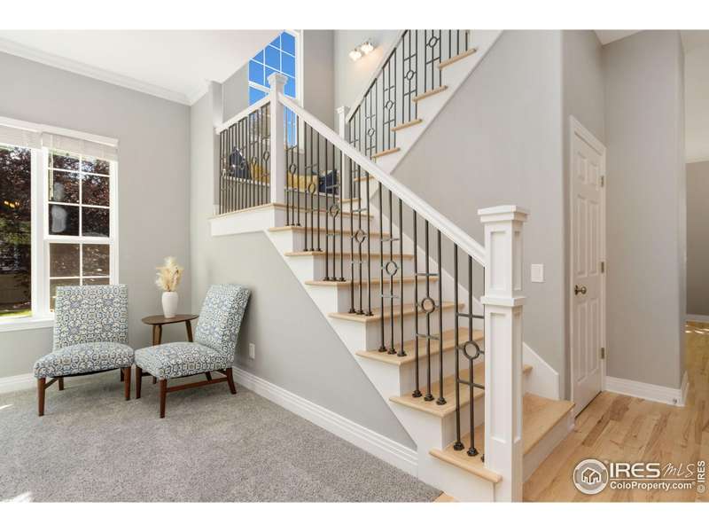 Welcome to one of Fort Collins' most sought-after neighborhoods! This beautifully remodeled home is ideally located on a cul-de-sac street with its own green space. Inside, you'll find soaring ceilings and light-filled spaces designed for both everyday living and entertaining. The gourmet kitchen has been recently updated with quartz countertops, top-of-the-line appliances, and stylish finishes, opening seamlessly into the dining and living areas. The expansive primary suite features a brand-new, spa-inspired 5-piece bathroom with a standalone soaking tub, oversized walk-in shower, and designer touches throughout. The finished basement offers versatility with a wet bar, media area, bathroom, and a dedicated kids' gym or workout studio. Step outside to enjoy Colorado living on the vaulted covered patio, the perfect extension of the home for year-round use, overlooking the private backyard. Additional highlights include a 3-car garage with epoxy floors, a main floor bedroom, updated finishes throughout, and a spacious .25 acre lot. Residents of Fossil Lake Ranch enjoy adjacent schools, a community pool, clubhouse, parks, and easy access to I-25. Ask your agent for a link to the 3D virtual tour of the property.
