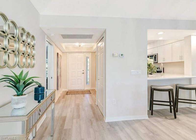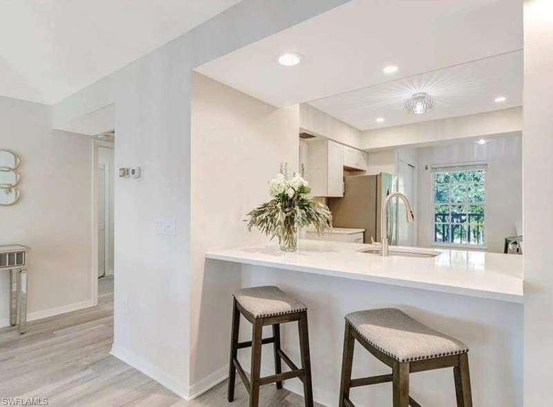 *Exceptional Seller Financing Available* ..Take advantage of a highly competitive interest rate and low down payment, making this an outstanding opportunity to own in one of the area's most sought-after neighborhoods. Ideally positioned well above the flood zone, this property offers both peace of mind and long-term value. Nestled in one of North Naples' most desirable neighborhoods, this fully renovated, rarely available, turnkey 3rd floor condo in The Pines offers an unbeatable combination of style, convenience, and peace of mind. Situated in a non-flood zone, not requiring flood insurance, this home has remained unaffected by recent hurricanes, including Ian. With an impeccably well-managed HOA that has not levied any assessments in the past four years and boasts strong reserves, you can relax knowing your investment is secure and well cared for. Located in the northwest corner of the prestigious Pine Ridge neighborhood, this residence has been masterfully transformed with high-end finishes throughout. Set at an impressive 16' base elevation of the parking area, this residence is just a short stroll from the vibrant Mercato, Whole Foods, Ritz Carlton Naples, and the pristine Vanderbilt Beach. The Pines is arguably one of the best locations in all of North Naples, offering the perfect blend of serene privacy and exceptional accessibility, making it a true gem. Inside, the condo has been meticulously reimagined with high-end finishes throughout, creating a sophisticated, beach-inspired ambiance. The custom bathrooms include free-standing vanities, frameless shower doors, custom shower floors with niches, tasteful wallpaper accents, and oversized porcelain tiles throughout. The entire home is beautifully coordinated with a neutral color palette, all outlets and lighting have been upgraded as well as a "Waterdrop" RO System in the kitchen.The chic furniture package enhances the space, ensuring a hassle-free, move-in-ready experience. Step onto your private screened lanai with new tile flooring and enjoy the privacy and serene views of the mature trees and lush greenery on The Pines grounds. This condo is move-in-ready, hassle-free living experience and sold "turnkey" including even the bedding, decor and wall hangings. Just bring your toothbrush! No renovation headaches-everything has been done for you. This condo provides the ultimate Naples lifestyle: from lounging by the pool and spending days at the beach to enjoying world-class dining, shopping, and outdoor activities a few steps away. Whether you're seeking relaxation or adventure, it's all at your doorstep from this prime location. Don't miss the opportunity to live in this beautifully renovated property. Your next adventure begins here!