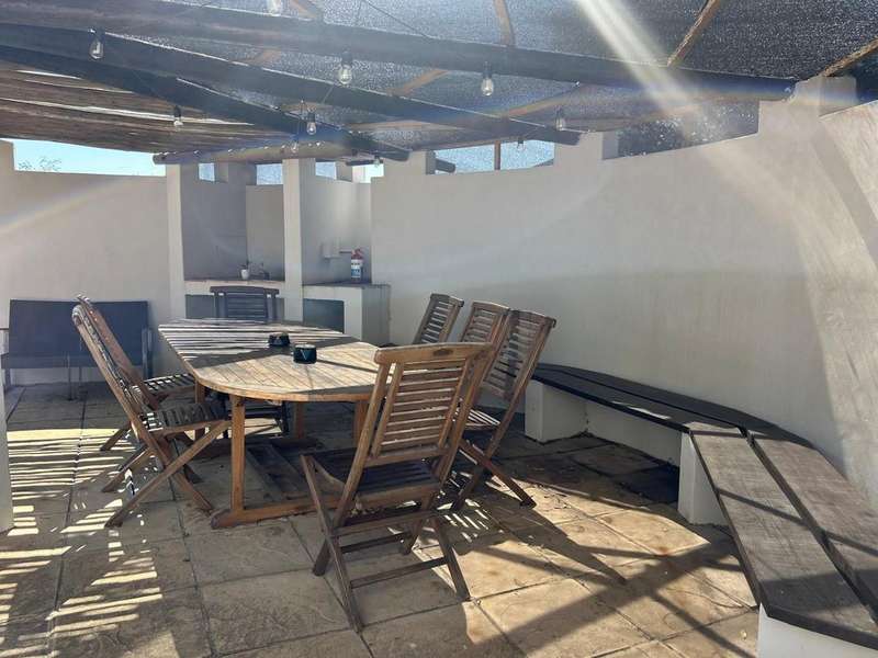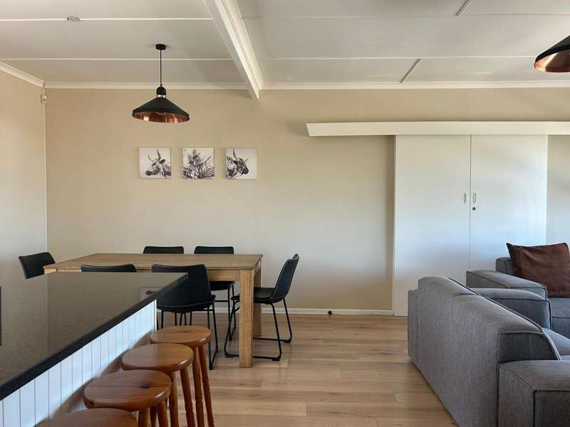 Situated on a large corner plot with uninterrupted ocean views at the front, while the magnificent Babilonstoring mountains provide the perfect backdrop for the property. The home is energy-smart with a cutting-edge Sunsynk solar system complete with two backup batteries. There is also a borehole water system for eco-friendly irrigation. On the ground floor of the home, there is an open-plan apartment with a stylish, fully equipped kitchen, comfortably sized living/dining area, and a bedroom with an en-suite bathroom. This unit has a seamless flow to the outdoor terrace. Upstairs, are the two elegant apartments, both feature private balconies with unobstructed sea views. One of the apartments can accommodate up to 4 guests, while the other apartment provides sleeping for up to 6 people. Clever in design via a smart sliding door system between both apartments, the units may be transformed into a large singular apartment that can host up to 10 guests, making it an ideal space for a large booking. Both upstairs apartments feature fully fitted kitchens and bathrooms that are modern in design and layout.
