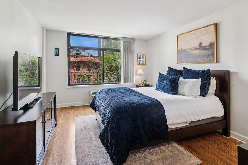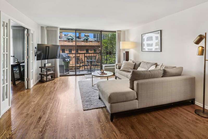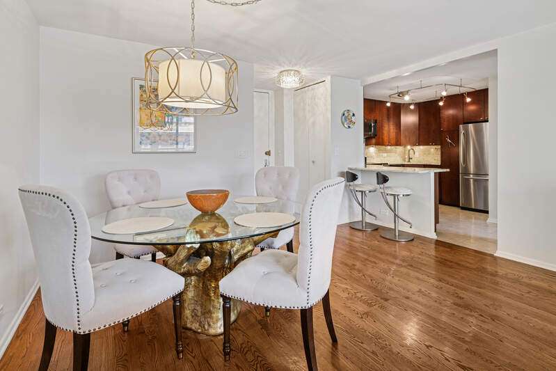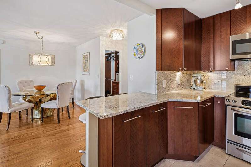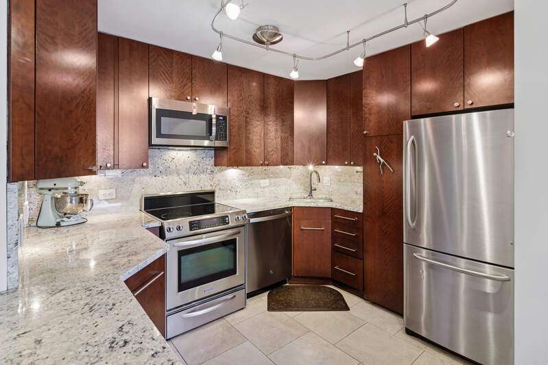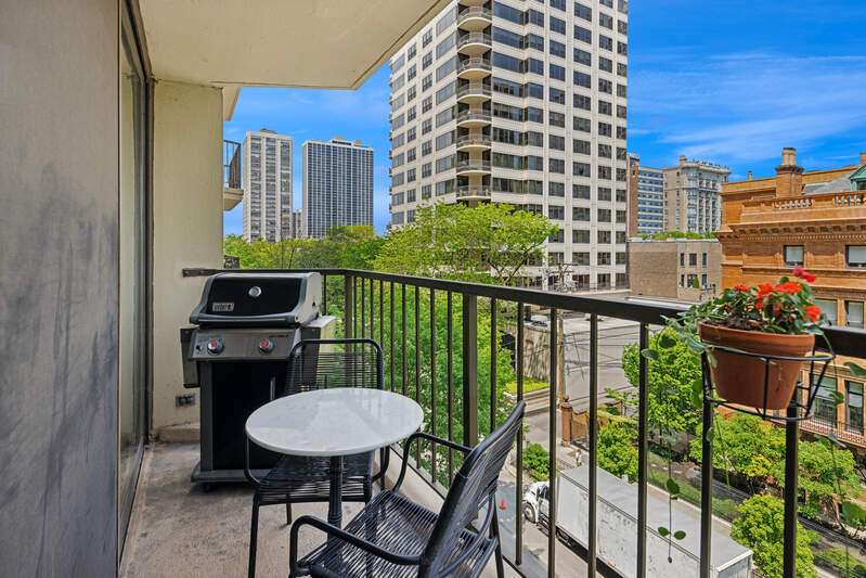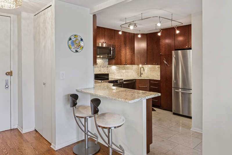 Welcome to this immaculately maintained and beautifully updated 2 bed, 2 bath condo located in the heart of the Gold Coast. From your private balcony, take in the tree top views of this amazing historic neighborhood, steps from the lake, downtown, shopping, and restaurants! The kitchen is a chef's dream, with sleek cherry cabinetry, granite countertops, stainless steel appliances, marble floors, and a breakfast bar flowing into the light-filled open living room and dining area. Split 2-bedroom floor plan with generous room sizes and gorgeous hardwood floors throughout. The spacious primary suite features a walk-in closet and recently updated bath. Off the living area, french doors open to a large second bedroom, which works perfectly for overnight guests, a nursery, or home office. Elevator building with extra storage included. Rental parking available in the building. All of this in an unbeatable Gold Coast location!