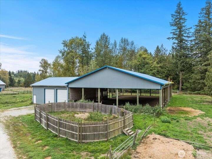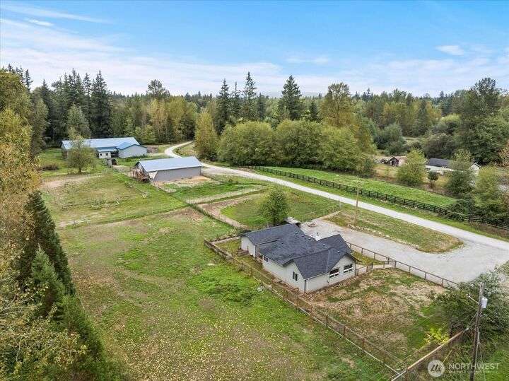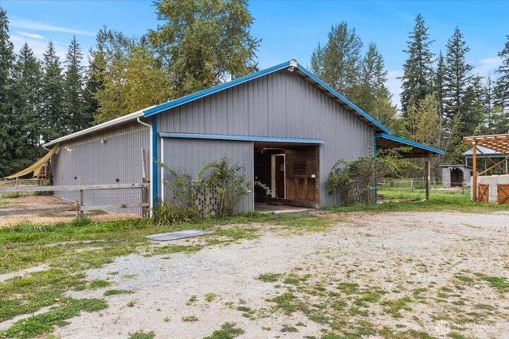 Turnkey EQUESTIAN property on almost 9 ACRES with move-in ready FARMHOUSE in Stanwood! This 3-bedroom, 2-bath home offers comfortable one-story living with fresh interior paint and new composition ROOF! Property features lit 108' x 60' COVERED riding arena with insulated viewing room, 133' x 66' grassed outdoor ARENA and 8+ fenced/crossed fenced pastures! Large 8 stall BARN with water and power, fully insulated tack room and upstairs office with ample storage. PLUS 1,295 sq ft SHOP with power, rollup doors and parking for horse trailer/RV and more! Tons of income producing potential/opportunity! Close to I-5 too!