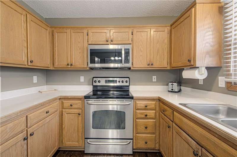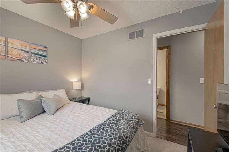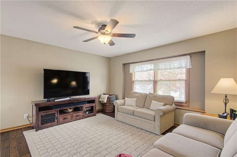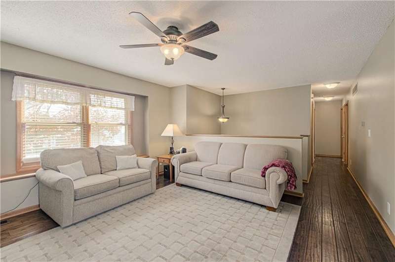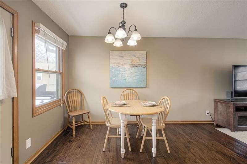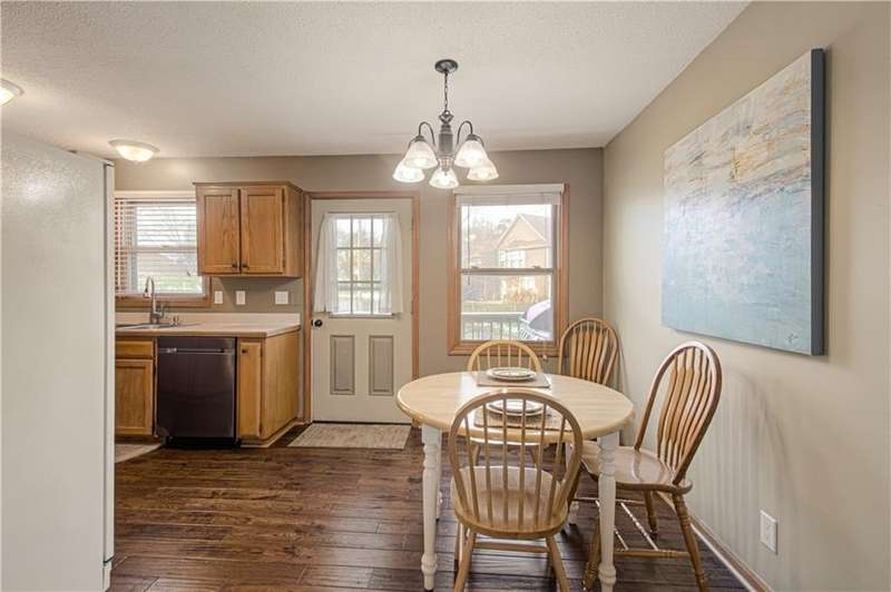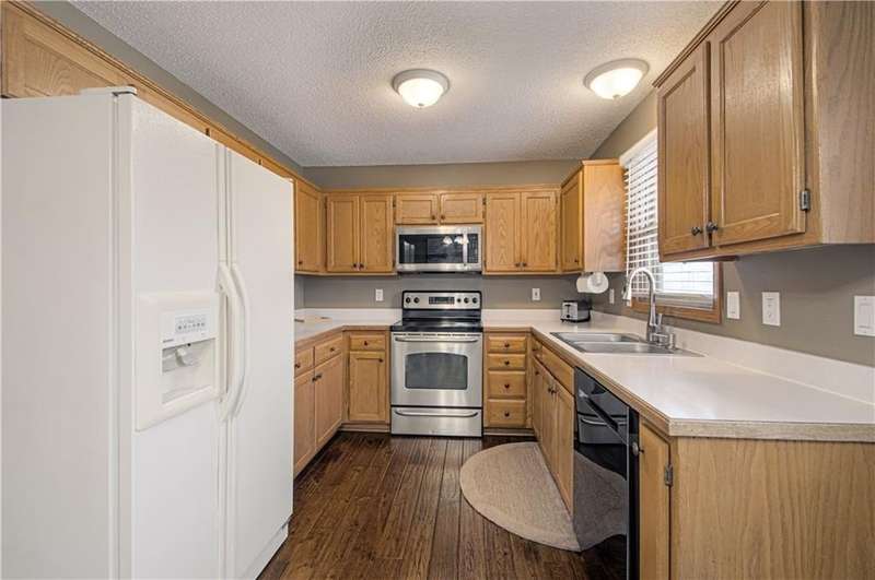 This charming, well maintained, home is located in the heart of De Soto. Featuring three bedrooms with ample amounts of natural light. Two separate living spaces, and the kitchen over looking the backyard. Hardwood floors through the main living spaces. Motion activated under stair lighting recently added for safety and convenience. Updated entryway tile and bathroom floors. Shower added to primary bathroom to make additional full bathroom. Sitting on a quarter acre lot with mature trees and fenced in yard!