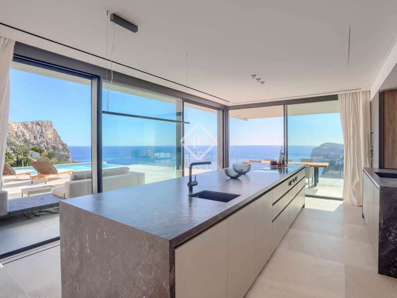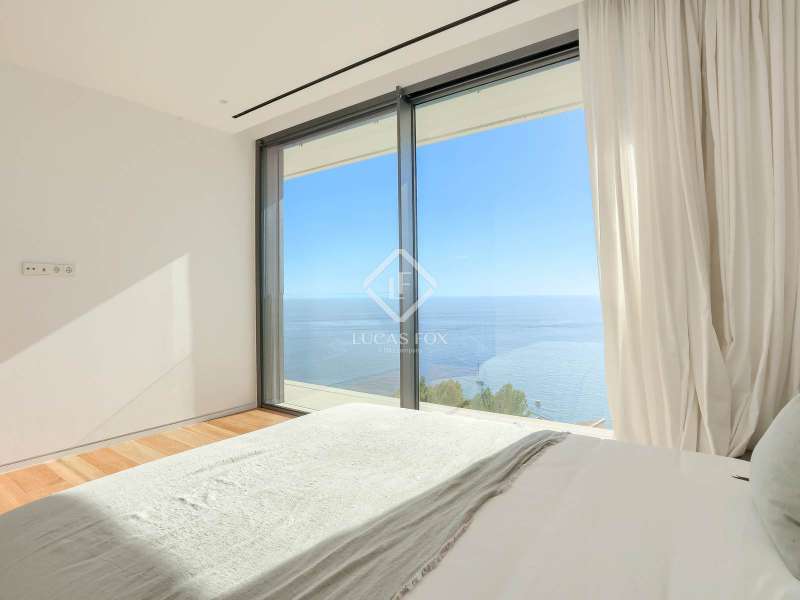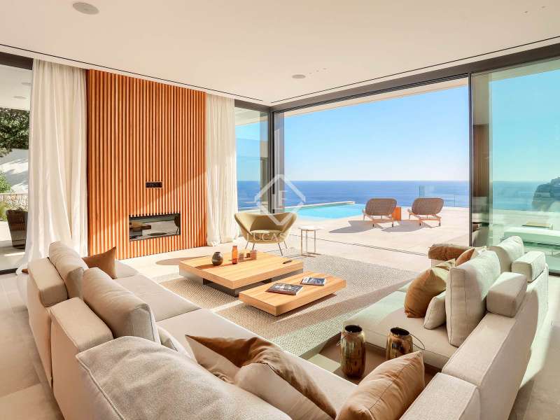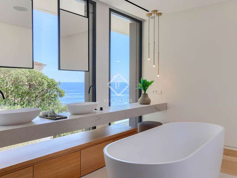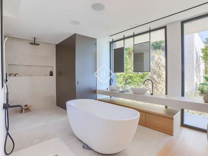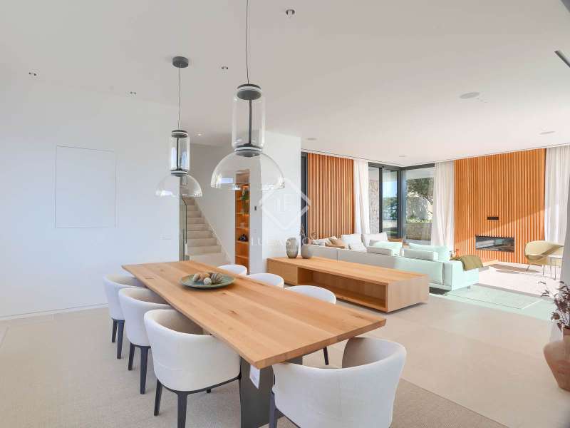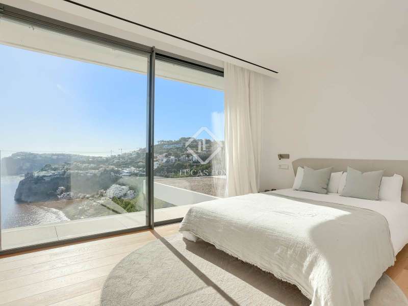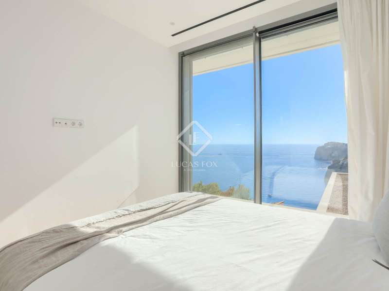 Nestled in one of the most exclusive areas of Cala Llamp, just a few minutes from the highly sought-after Port d'Andratx, this unique, recently built (2022) contemporary villa embodies Mediterranean luxury in all its splendor. Designed by a renowned architect, this unique property offers clean lines, spectacular sea views as far as the island of Ibiza, and high-end amenities on 4 levels served by an interior elevator. The entrance level features a designer garage that can accommodate up to four vehicles. On the lower level, you'll discover a complete wellness area with a gym, sauna, steam room, and a cinema room, as well as several versatile rooms that can be converted to suit your needs (additional bedrooms, offices, etc.). The heart of the house, bathed in natural light thanks to its large bay windows, consists of a living room with a fireplace, an elegant dining room, and a high-end kitchen open to the outdoors. You will enjoy a vast terrace with an infinity pool and a summer kitchen, ideal for your evenings facing the sea and living an exclusive experience. The sleeping area offers four en-suite bedrooms with dressing rooms, including a sumptuous master suite with a plunging view of the sea. Finally, the villa's rooftop invites you to relax with a panoramic jacuzzi and a second summer kitchen, perfect for admiring the sunsets over the Mediterranean. Equipped with a complete home automation system, reversible air conditioning and all the latest technologies, this property combines modern comfort, contemporary design and a dream location. Less than 5 minutes from Port d'Andratx and its restaurants, galleries and refined boutiques, you will also be in the immediate vicinity of prestigious golf courses and only 30 minutes from Palma and its international airport.