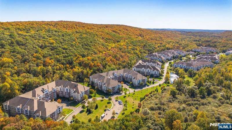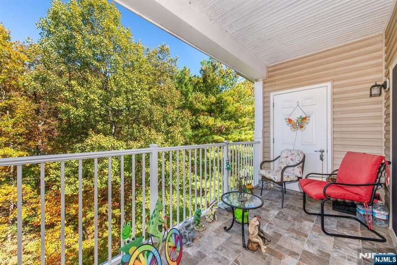 This impressive penthouse in Wanaque Reserve, a Del Webb active adult 55+ community, is a 2,767 SF home with 3 bedrooms (one used as a sitting room), 3 full baths, a gourmet eat-in-kitchen with cherry cabinets, granite counters, stainless steel appliances and center island, formal dining room, great room, den, and tiled balcony with beautiful wood views. This rare unit includes upgraded features, two deeded parking spots, a 6x10 deeded storage unit, two entrances, and a flexible separate space with the 3rd bedroom and full bath, ideal for guests or family members. Residents have access to a 20,000 SF clubhouse with a cafe, indoor and outdoor pools, gym, theater, tennis and pickleball courts and over 45 clubs and activities. Children 19+ can live in the community. The home is located in the more scenic part of the community...in the newest building. This home is a must-see!