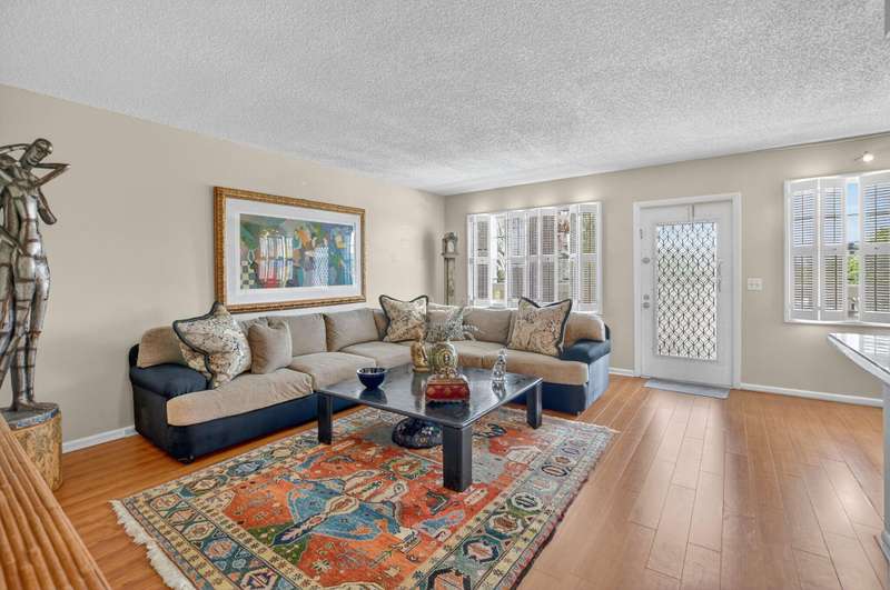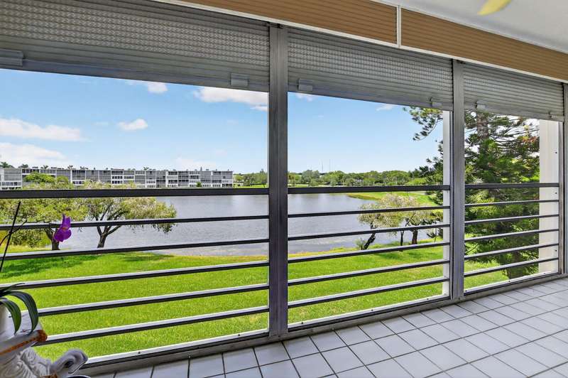 Ainslie! PRICED TO SELL! This OPEN layout, beautifully RENOVATED KITCHEN features the wall removed, between the living room and kitchen. It has white wooden cabinets, and granite countertops, connecting to a spacious living and dining area. The condo includes attractive wood flooring. Both bathrooms are tastefully renovated. The lanai offers impressive WATER VIEWS views. It is conveniently located near places of worship, clubhouse, and the entrance gate. This appealing and reasonably priced third-floor condo is situated in the desirable Ainslie section of Century Village Boca, a lively community for individuals aged 55 and older.