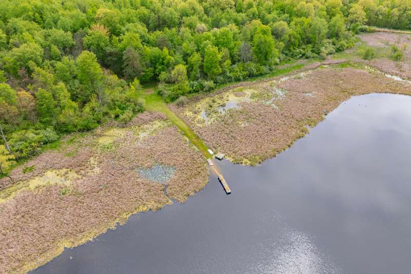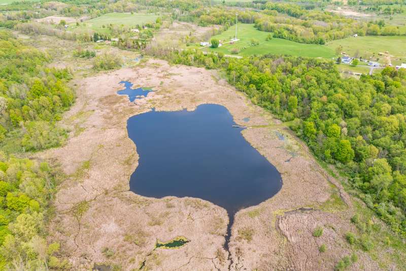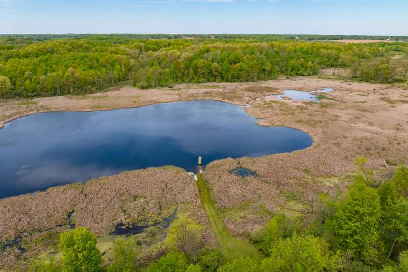 Discover unparalleled tranquility and natural beauty at this exceptional 47-acre country estate located in Barry County, MI. This unique property combines rustic charm with modern amenities, making it the perfect retreat for nature lovers, hobby farmers, or anyone seeking a peaceful rural lifestyle. At the heart of the property lies a private 8-acre lake-Ellis Lake-reaching depths of 30 feet and stocked for fishing, kayaking, and lakeside enjoyment. The cozy 2-bedroom home offers a warm living room with a stunning stone fireplace, ideal for a year-round residence, weekend getaway, or short-term rental. Multiple outbuildings include a spacious 24x60 pole barn, a 12x16 lean-to, and a stable-ideal for storage, a workshop, or small-scale farming and equestrian activities. The land features rolling hills, mature woods, and scenic trails perfect for hiking, hunting, or exploring. With over 2,000 feet of lake frontage and diverse ecological features including wetlands, this estate is a rare and peaceful sanctuary.
