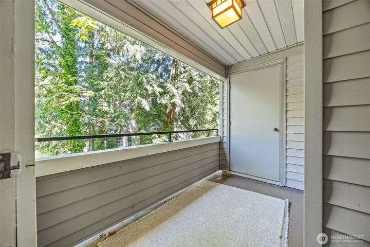 Tucked quietly beside Juanita Creek, this rare end-unit condo offers a peaceful, tree-lined setting with ultimate privacy. Step inside to brand-new luxury vinyl plank flooring that brings a fresh, elevated feel. The open layout features a cozy wood-burning fireplace, defined dining area, and a kitchen with slab granite counters, stainless steel appliances, and plenty of storage. Two spacious bedrooms share a full bath with granite counters and tile flooring. Full-size in-unit laundry and a storage closet off the private deck add convenience. Enjoy the community pool, spa, clubhouse, and gym—just minutes from parks, beaches, dining, Totem Lake Village, and downtown Kirkland. No rental cap!