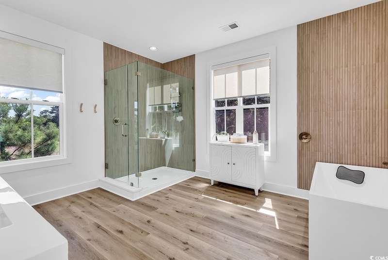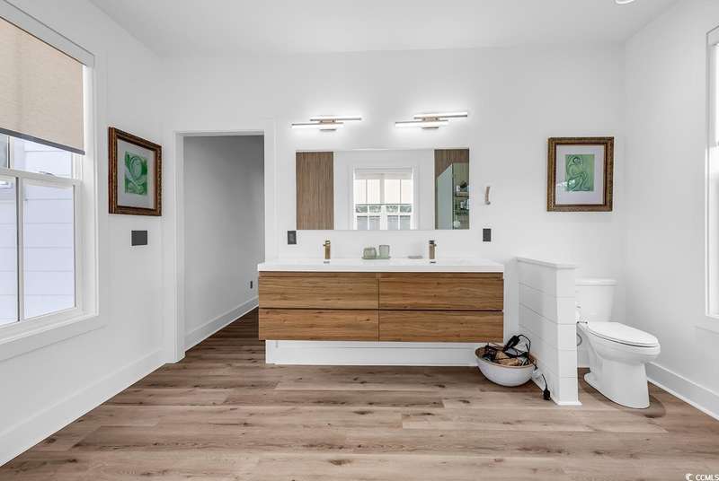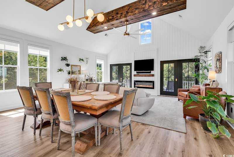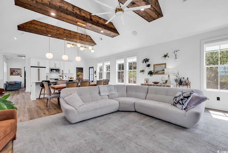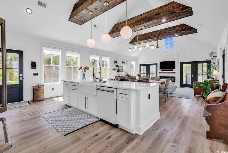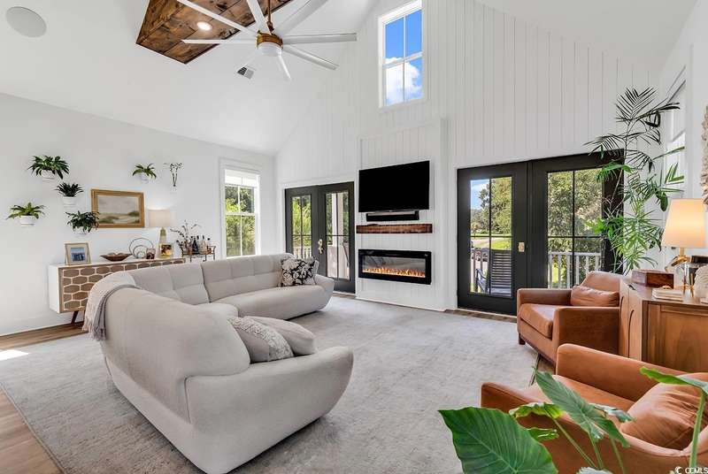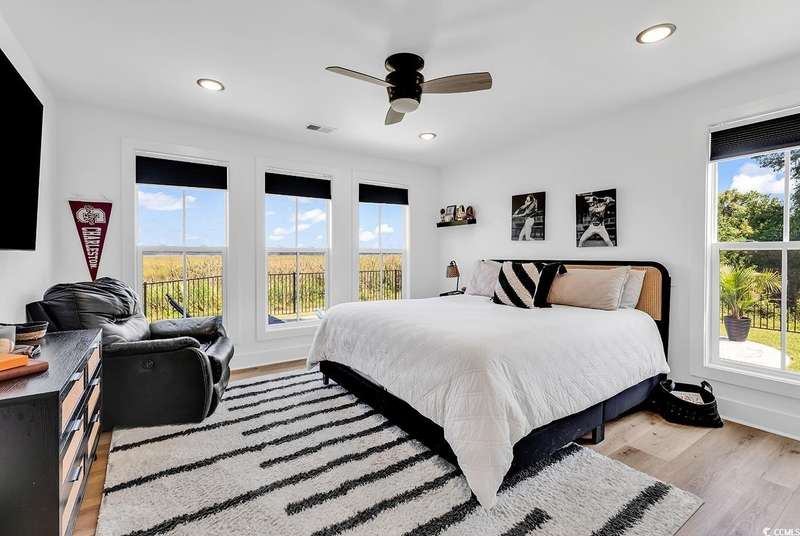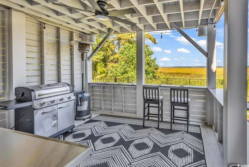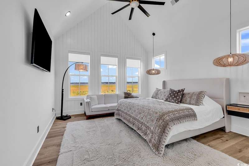 Panoramic Water Views from this home on Winyah Bay! This home constructed in 2023 is at the end of a cul-de-sac and is surrounded by Winyah Bay on one side and a serene pond on the other. Enter the open living room with vaulted ceilings and exposed beams to give it beautiful charm. The gourmet kitchen is a chef's dream with GE Cafe Appliances, walk-in pantry and beautiful tile backsplash. The primary bedroom has vaulted ceilings, shiplap wall and a massive 14x14 closet with island for storage. The primary bath has a beautiful tub and separate shower, two sinks and beautifully appointed. There also is a sitting area, laundry room and powder room on the main floor. The downstairs has two spacious bedrooms with walk-in closets and private bedrooms. Enjoy a morning coffee on your screened porch while watching the sun rise over the beautiful bay. There is another room that can be used as a bedroom or office and a separate sitting area/den. Outdoors will be your private oasis with an outdoor cooking/grilling area and pool with tanning ledge to watch the boats pass by! The outdoor area is surrounded with a wrought iron fence. Large garage with floor coating. South Island Plantation is a gated community on Winyah Bay the southern end of Georgetown. It is less than 60 miles to historic Charleston, SC and 40 miles to Myrtle Beach. Just a few miles to Georgetown's Front Street with boutique shopping and dining. This community has a beautiful clubhouse with a fitness center, an outdoor pool, community dock on Winyah Bay and many outdoor walking and biking trails!
